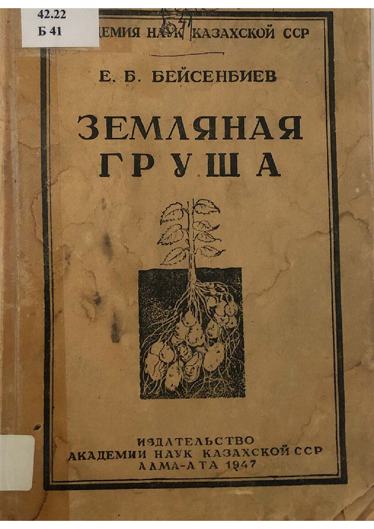 Земляная груша (топинамбур) [Текст] : агробиологические особенности и промышленно-техническое значение земляной груши / Е. Б. Бейсенбиев ; отв. Д. А. Зыков ; Акад. наук КазССР... – Алматы : Издательство академии наук Казахской ССР, 1947. - 76, [2] c., ил.;– (Серия научно-популярной литературы. . – Библиогр.: с. 76-77 . – 2000 экз.