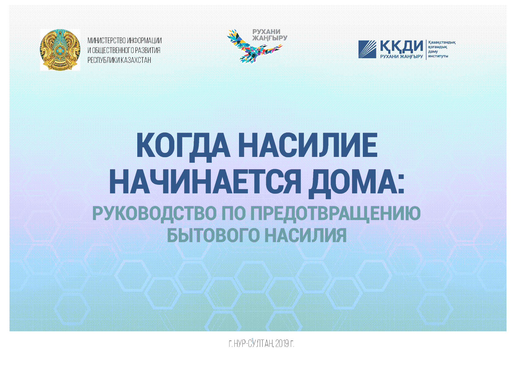 Когда насилие начинается дома [Текст] : руководство по предотвращению бытового насилия : информационный справочник / А. М. Ашимова К. Б. Ойшыбаев А. М. Касымбеков А. С. Кайдарова Ж. С. Батталова ; М-во информации и общественного развития РК ; Казахстанский ин-т общественного развития «Рухани жаңғыру»... – Нур-Султан : [б. и.], 2019. - 57 c., ил.; - Рухани жаңғыру . – Библиогр. в подстроч. примеч. . – [т. ж.] – 978-9965-23-556-6