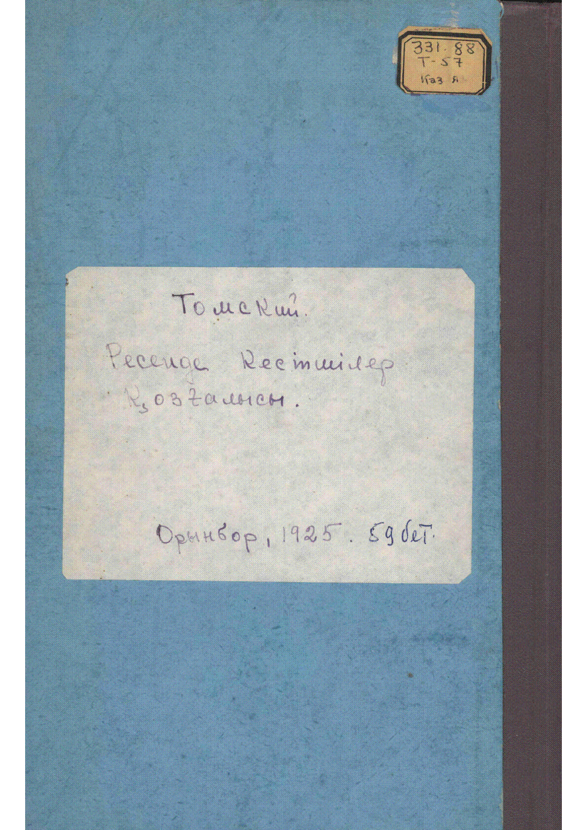 Ресейде кәсіпшілер қозғалысы = رەسەيدە كەسىبشىلەر قوزعالىسى [Мәтін] / М. Томский ... – Орынбор : Қазақстан мемлекет баспасы, 1925. - 99 б. 28х19 см - Мәтін араб графикасымен жазылған. . . – 750 дана