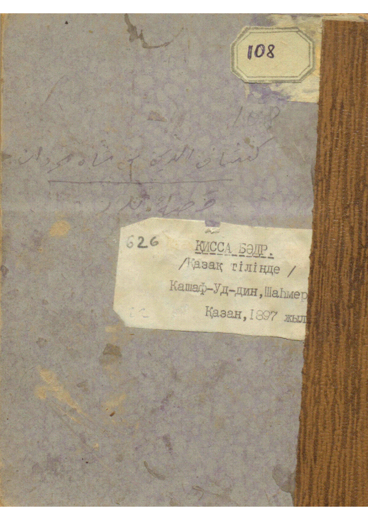 Қисса-и Бәдір = قصهء بدر [Мәтін] / Кашшафуддин ... – Қазан : М.А.Чиркова уәрсәләрінің табиғханасы, 1897. - 15 б. - Мәтін араб графикасымен жазылған, - Мұхаммед пайғамбардың сахабалары мен Мекке мүшіріктерінің Бәдір атты жерде соғысқаны жайында . .