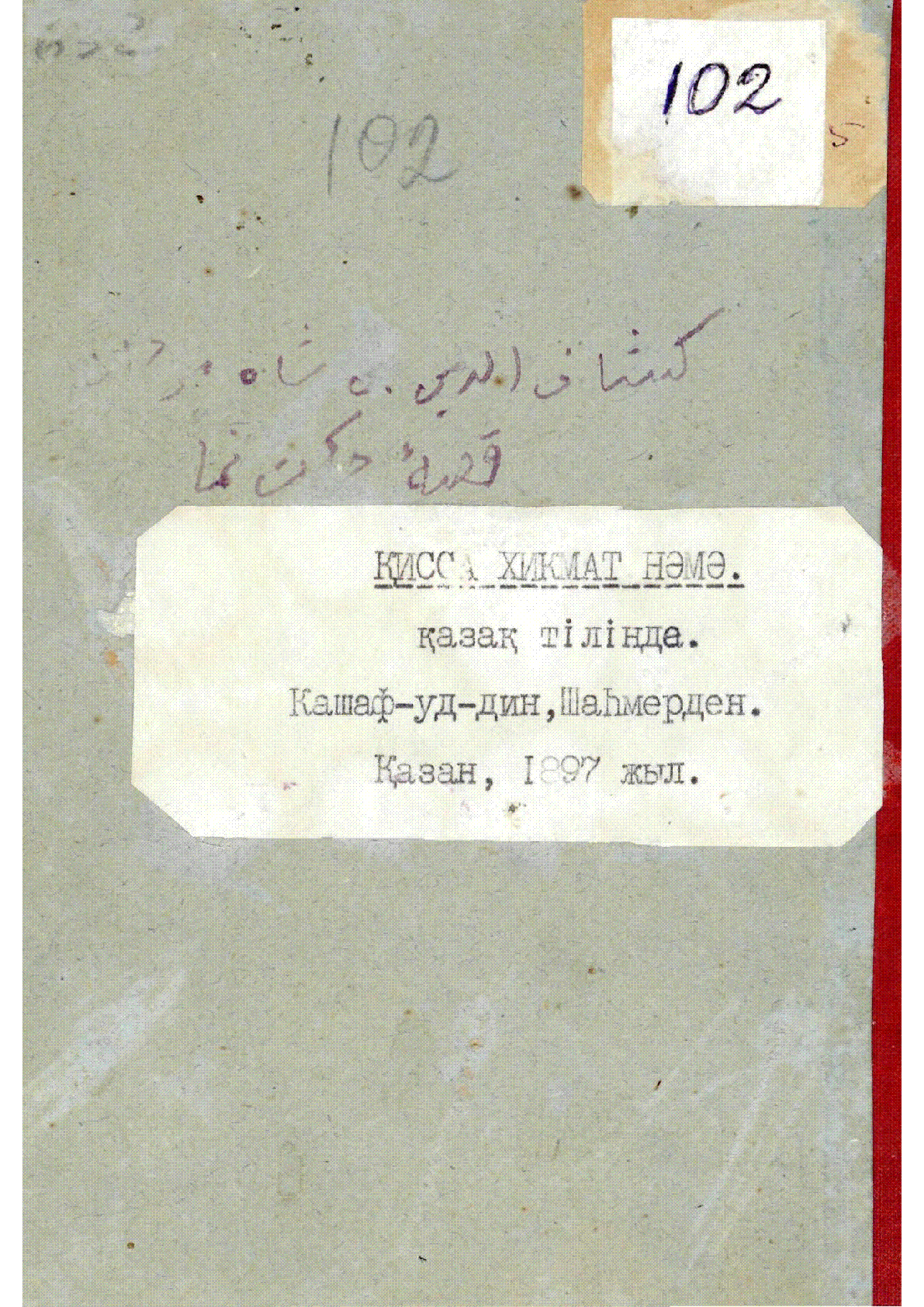 Қисса-и хикмет-нама = قصهء حکمت نما [Мәтін] / Кашшафуддин ... – Қазан : М.А.Чиркова уәрсәләрінің табиғханасы, 1897. - 15 б. - Мысыр патшасы мен уәзірлеріне Әбуғали мен ибн Синаның әртүрлі керемет хикметтер көрсетуі жайында, - Араб графикасымен. . .