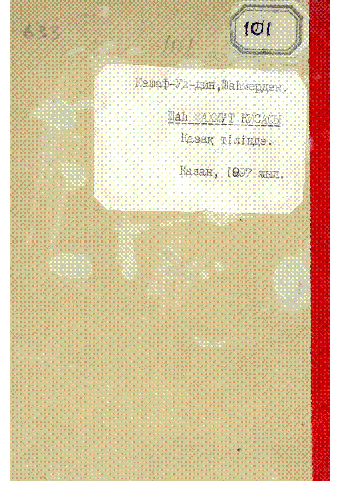 Қисса-и шаһ Махмұд = قصهء شاه محمود [Мәтін] / Кашшафуддин ... – Қазан : М.А.Чиркова уәрсәләрінің табиғханасы, 1897. - 16 б. - Мәтін араб графикасымен жазылған, - Белгілі философ, химик, дәрігер Әбу-ғали ибн-Синаның білгірлігі туралы . .