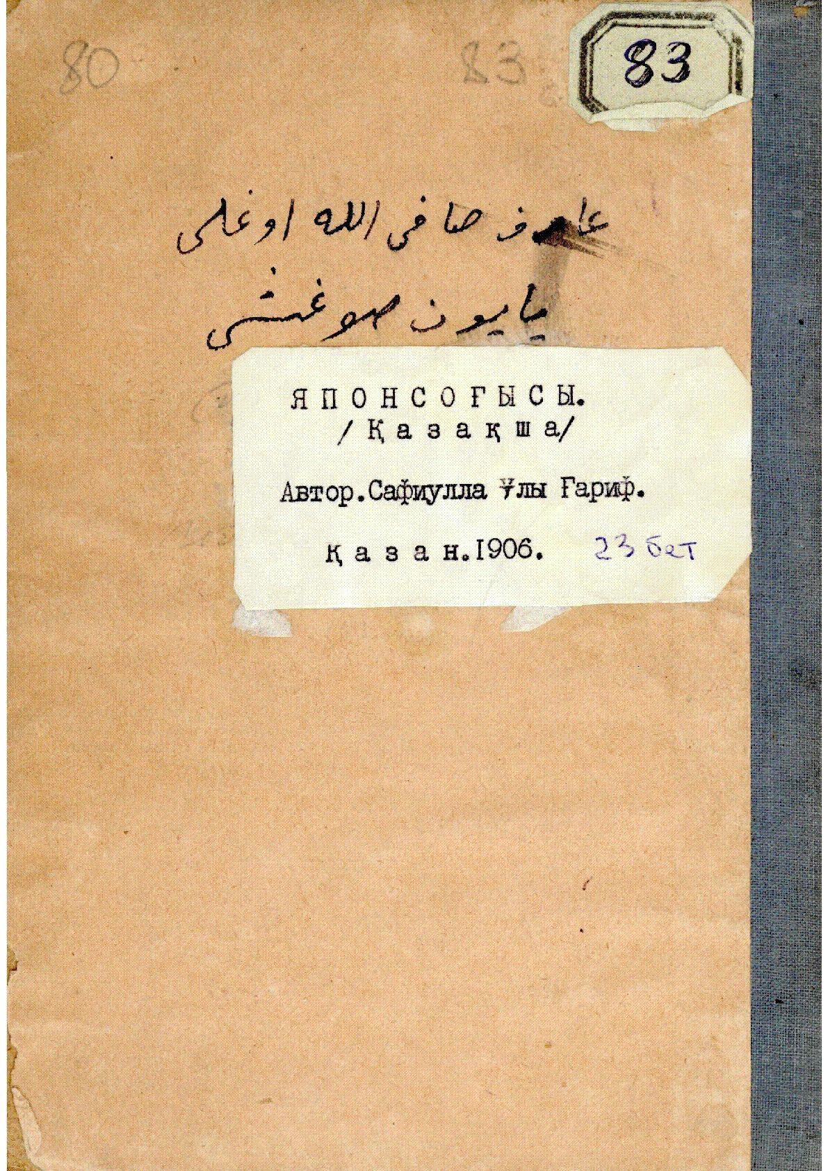 Жапон соғысы = جاپون صوغشى [Мәтін] : орыс-жапон соғысы туралы / ; бастырған: Шәмсуддин Хұсаинов уәрсәләрі... – Қазан : Университет табиғханасы, 1906. - 23 бет 22 см. - "Мәдени мұра" бағдарламасы бойынша., Мәтін араб графикасымен жазылған . .