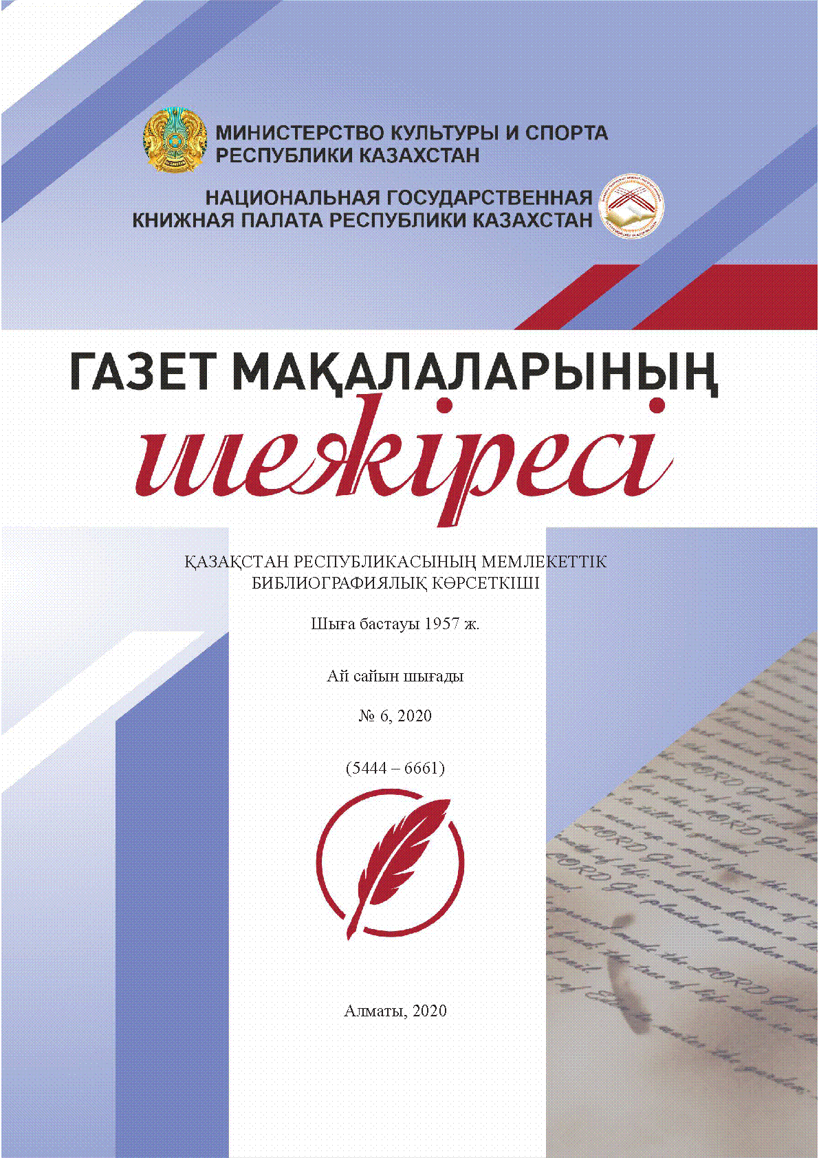 Газет мақалаларының шежіресі [Мәтін] : Қазақстан Республикасы мемлекеттік библиографиялық көрсеткіші : Шыға бастауы 1957 ж. ; Қазақстан Республикасы Мәдениет және спорт министрлігі, Қазақстан Республикасы Ұлттық мемлекеттік Кітап палатасы ; [жалпы ред. басқ.: Ә. К. Қойтанов, Т. Т. Салменбаева, жауапты шығарушы: Ж. Ж. Жексембаева, құраст.: А. Маткеримова, Г. К. Искендирова, Ж. Болатова]. – Алматы : [б. ж.], 2020. - .– [т. ж.].– № 6, 2020 (5444 – 6661) . - [т. ж.]