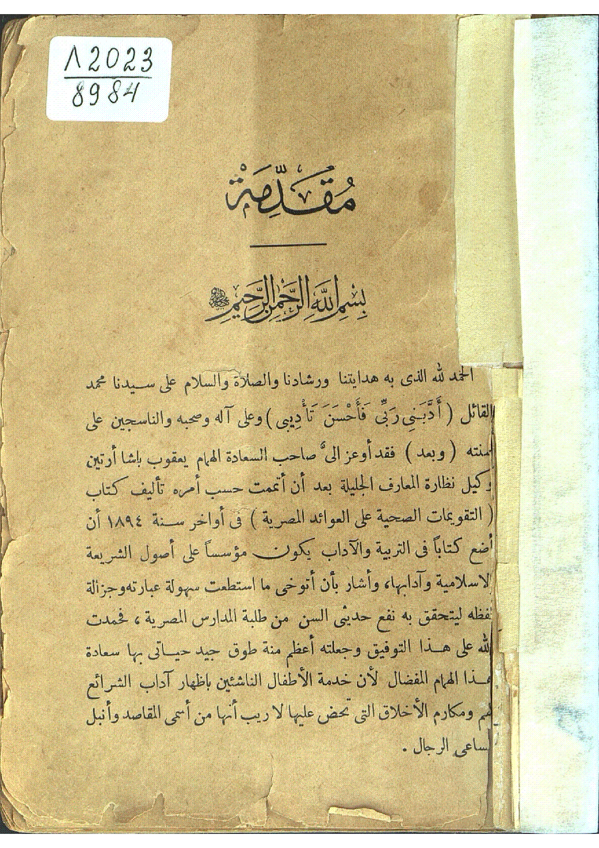 التربية و الاداب الشعية [Text] / ... – Каир : [б. ж.], [1895]. - [200] б. . . – [б. ж.] : 1 тг.