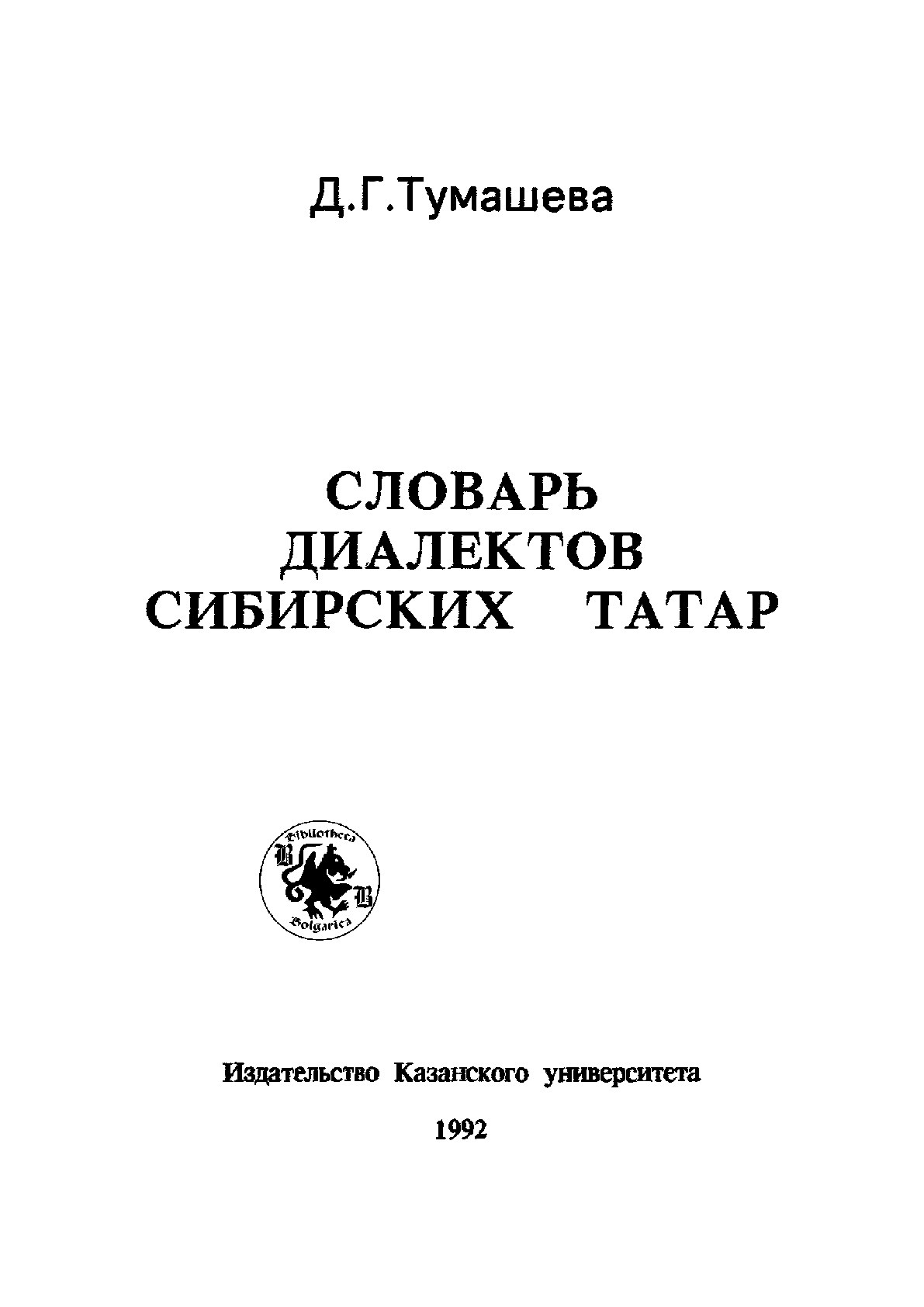 Словарь диалектов сибирских татар [Текст] / Д. Г. Тумашева ... – Казань : Издательство Канаского университета, 1992. - 255 с. - Текст на русском, татарском языке . . – 2500 экз. – ISBN 5-7464-0507-8