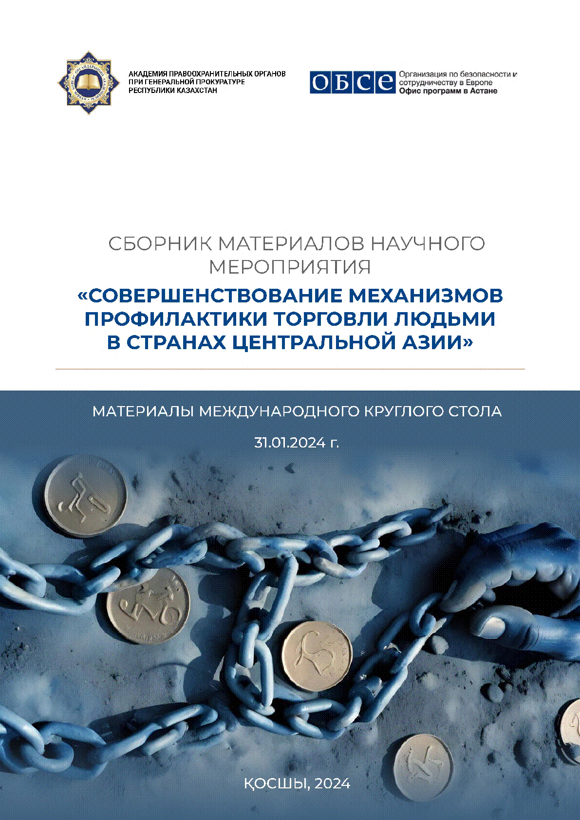 В сборнике материалов научного мероприятия представлены доклады, озвученные на международном круглом столе «Совершенствование механизмов профилактики торговли людьми в странах Центральной Азии», организованном Академией правоохранительных органов при ГП РК совместно с офисом программ ОБСЕ в Астане