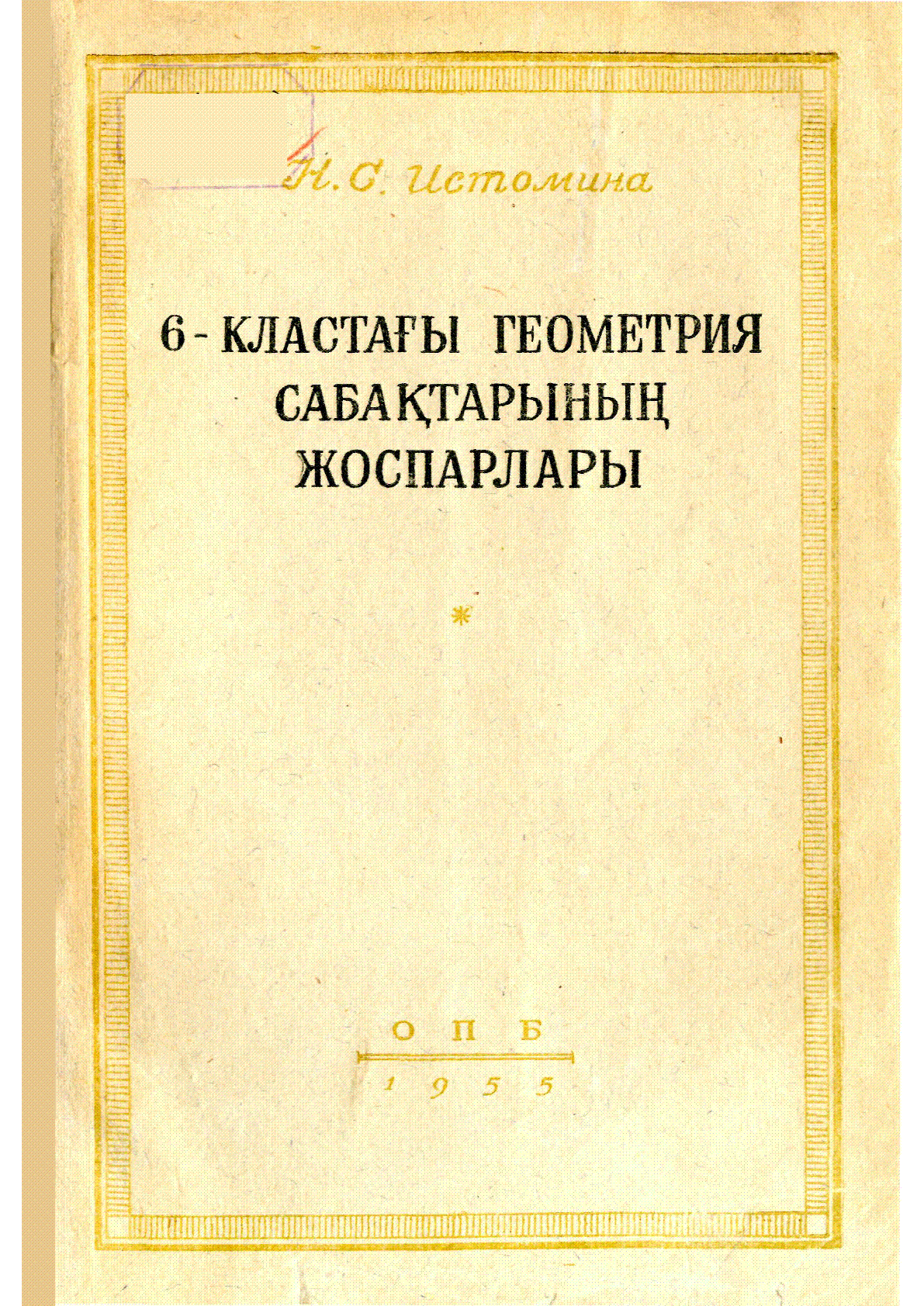 6-кластағы геометрия сабақтарының жоспарлары [Мәтін] : (жұмыс тәжірибесінен) / Н. Истомина ; редакциясын басқарған: В. М. Брадис ; орысшадан аударған М. Беков. – 2-басылым .. – Алматы : Қазақ мемлекеттік оқу педагогика баспасы, 1955. - 119, [1] б. . – Пайдаланған әдебиеттер: 118 б. . – 2000 дана
