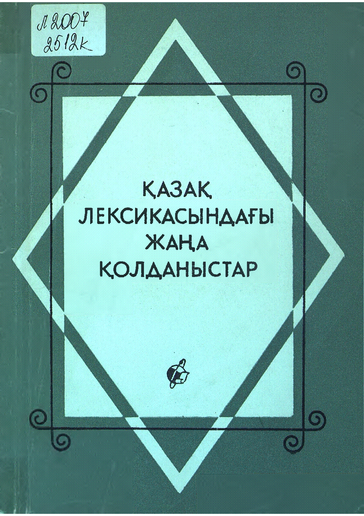 Қазақ лексикасындағы жаңа қолданыстар [Мәтін] / ; Қазақ ССР ғылым академиясы ; Тіл білімі институты ; құраст.: А. Алдашева [ж. б.] ; жауап. ред. Р. Сыздықова. – толықт., 2-бас. .. – Алматы : Ғылым, 1990. - 133, (2) б. - Шора Сарыбаев қоры . – Шартты қысқ. 135 б. . – 4000 дана – 5-628-00550-9 : 20 тг.