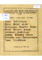 Айдос Бәйімбетұлы. Қағаз Медет келіні. Қарақалпақ Қазыбек батыр. Керей Мүсіреп шешен. Бекбосын Домбайұлы. Қыржы Бадығұл шешен. Балтабек қажы Байсұлтанұлы. Адық Оралбайұлы [Мәтін] / ... – Аякөз : Аякөз ауданаралық баспаханасы, 1993. - 56 б. 15 см – (Аякөз ақындары; 2-кітап. . . – [д. к.]
