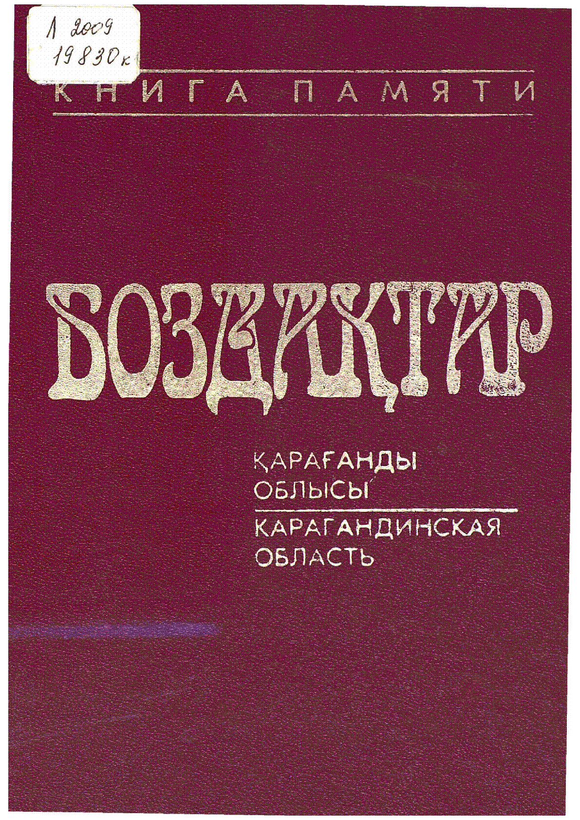 Боздақтар [Мәтін] : 1941-1945 ж. Ұлы Отан соғысы жеңісінің 50 жылдығына арналады ; [бас ред. Р. Н. Нұрғалиев] .- Алматы : Қазақ энциклопедиясы , 1994. – Книга памяти.– 10000 дана . – ISBN 5-89800-054-2 (1 т.), ISBN 5-89800-055-0 (мұқ.) - Мәтіні қазақ және орыс тілд. . 1-том . Қарағанды облысы– 495, [1] б., суретті . (мұқ.) : 200 тг.