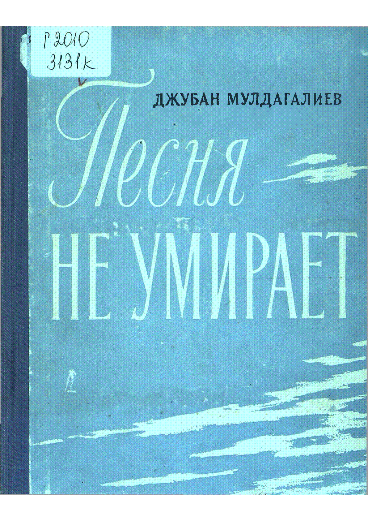 Песня не умирает [Текст] : стихи и поэмы / Дж. Мулдагалиев ... – Алма-Ата : Казгослитиздат, 1957. - 133, [1] с., портр.; . . – 4 000 экз. – не указан (в пер.) : 75 тг.