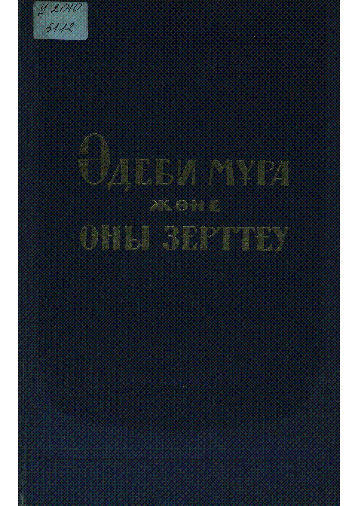Әдеби мұра және оны зерттеу = Литературное наследие и его изучение [Мәтін] : Қазақ әдебиетінің негізгі проблемаларына арналған ғылыми-теориялық конференцияның материалдары, Алматы, 1959 ж. 15-19 июнь / ; жауап. ред. М. Базарбаев ; ҚазССР Ғылым академиясы, Әдебиет және өнер ин-ты... – Алматы : Қазақ ССР Ғылым академиясы, 1961. - 374, [2] б. . . – 1800 дана (мұқ.) : 267 тг.