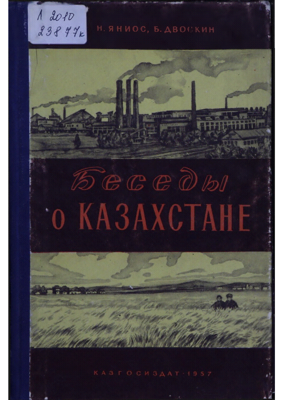 Беседы о Казахстане [Текст] / Н. И. Яниос Б. Я. Двоскин ... – Алма-Ата : Казахское государственное издательство, 1957. - 154, [3] c. , ил. ; . . – 15000 экз. (в пер.) : 250 тг.