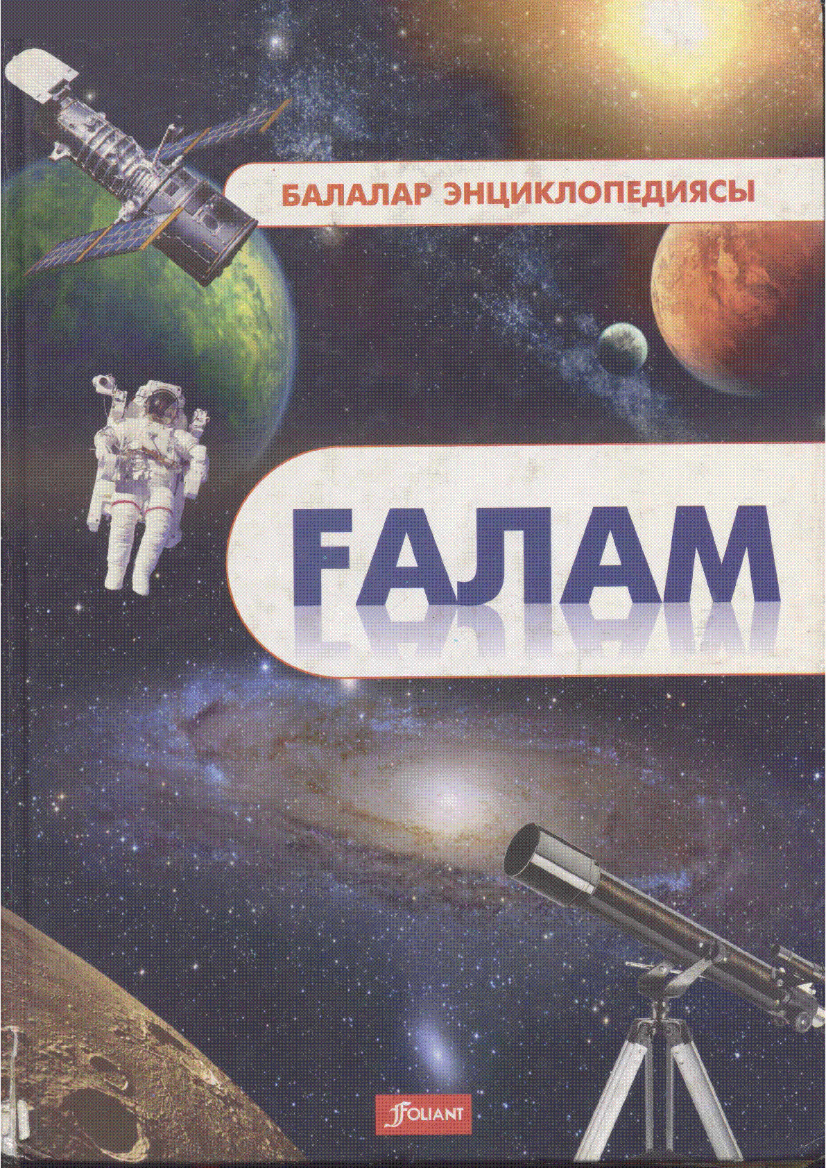 Ғалам [Мәтін] : [энциклопедия] / ; [қазақ тіл. ауд. Д. Алипбаева]... – Астана : Фолиант, 2012. - 160 б., суретті;– (Балалар энциклопедиясы. - ҚР Мәдениет және ақпарат министрлігі, Ақпарат және мұрағат комитетінің "Әдебиеттің әлеуметтік маңызды түрлерін басып шығару" бағдарламасы бойынша шығарылды . . – 2000 дана – ISBN 978-601-292-633-0 (мұқ.) : 1488 тг.