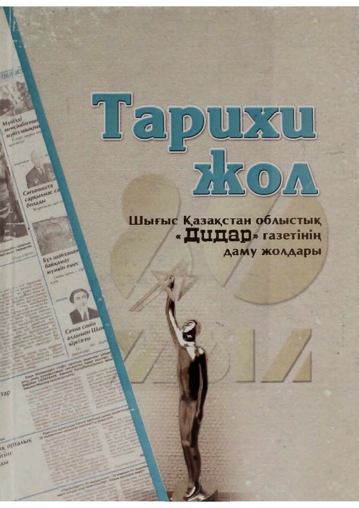 Тарихи жол [Мәтін] : Шығыс Қазақстан облыстық "Дидар" газетінің даму жолдары / А. Қасымов ... – Өскемен : Шығыс ақпарат, 2011. - 231 б. - Қазақстан Тәуелсіздігіне 20 жыл . – Библиогр.: 218-230 б. . – 1000 дана – ISBN 978-601-7070-73-1 : 310 тг.