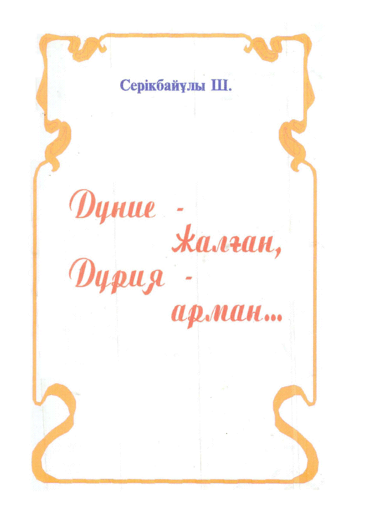 Дүние-жалған, дүрия-арман... [Text] / Серікбайұлы, Шайхислам ... – Қызылорда : [б. ж.], 2002. - 141 б. . . – 500 дана – 9965-07-001-6 : [б. ж.]