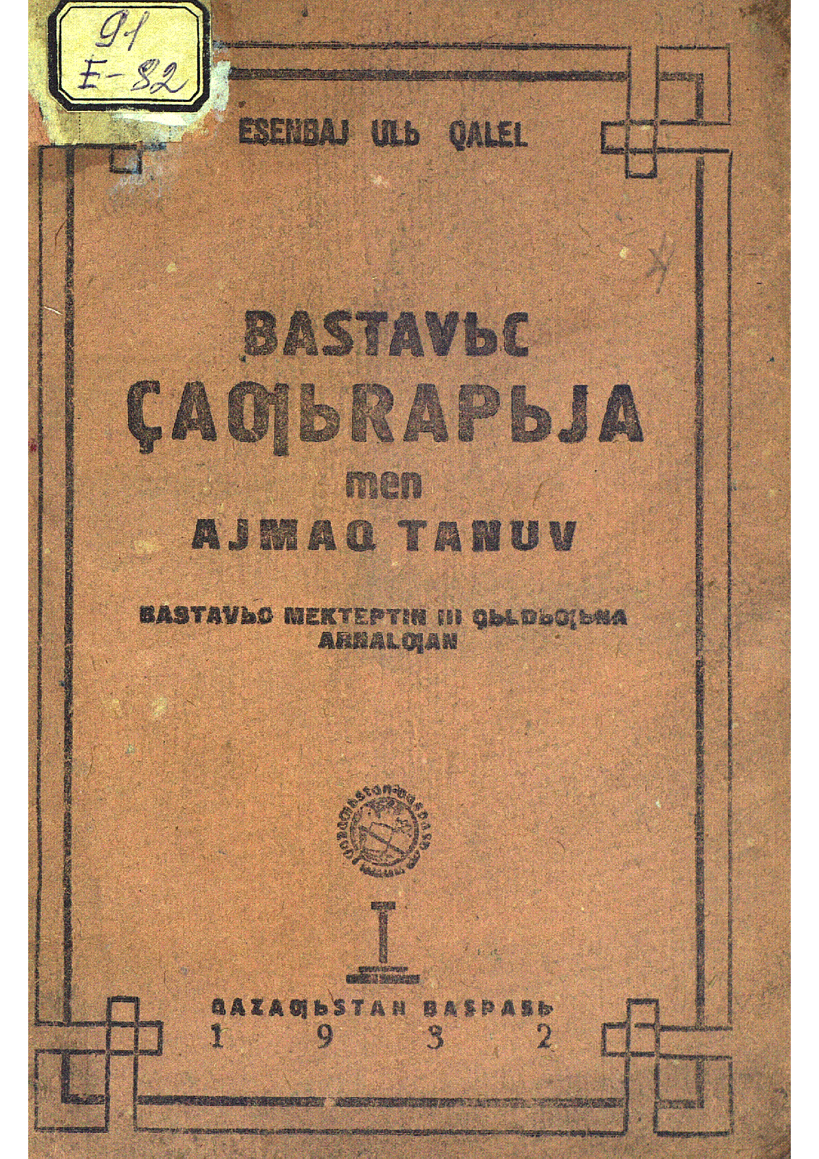 Bastavьс Cagьrapьja men ajmaq tanuv [Текст] / Esenbaj Ulь Qalel ... – [Алма-Ата] : Қазақстан баспасы, 1932. - 98 б., суретті; . . – көрсетілмеген