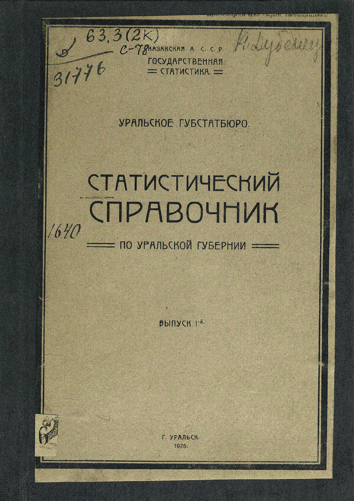 Статистический справочник по Уральской губернии [Текст] ; Казакская А.С.С.Р., Государственная статистика, Уральское Губстатбюро- Уральск : [Б. и.] , 1925. Вып. 1 .– 111, [1] с., табл. .