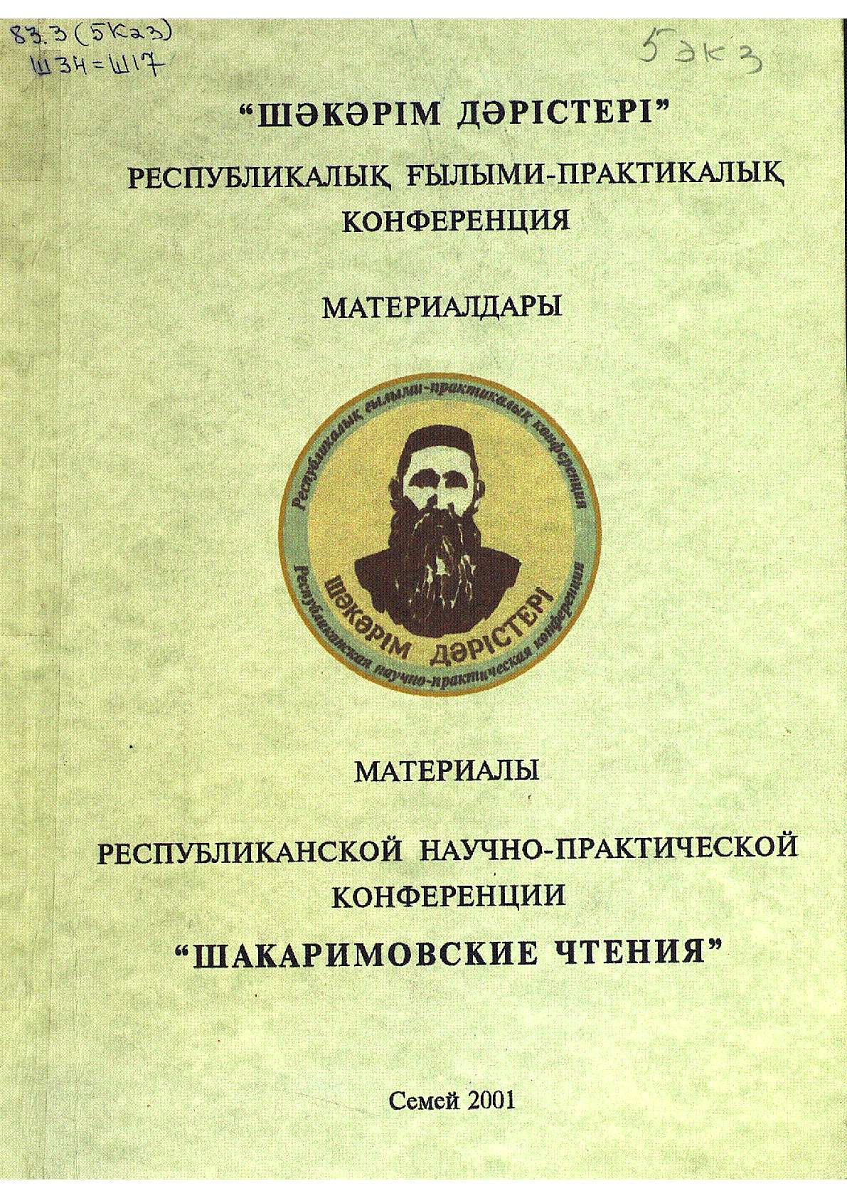 Шакаримовские чтения : Материалы республиканской научно-практической конференции / ... – Семей : [Б. и.], 2001. - 219 с. - Текст на рус. и каз. языках . . – 9965-492-51-4