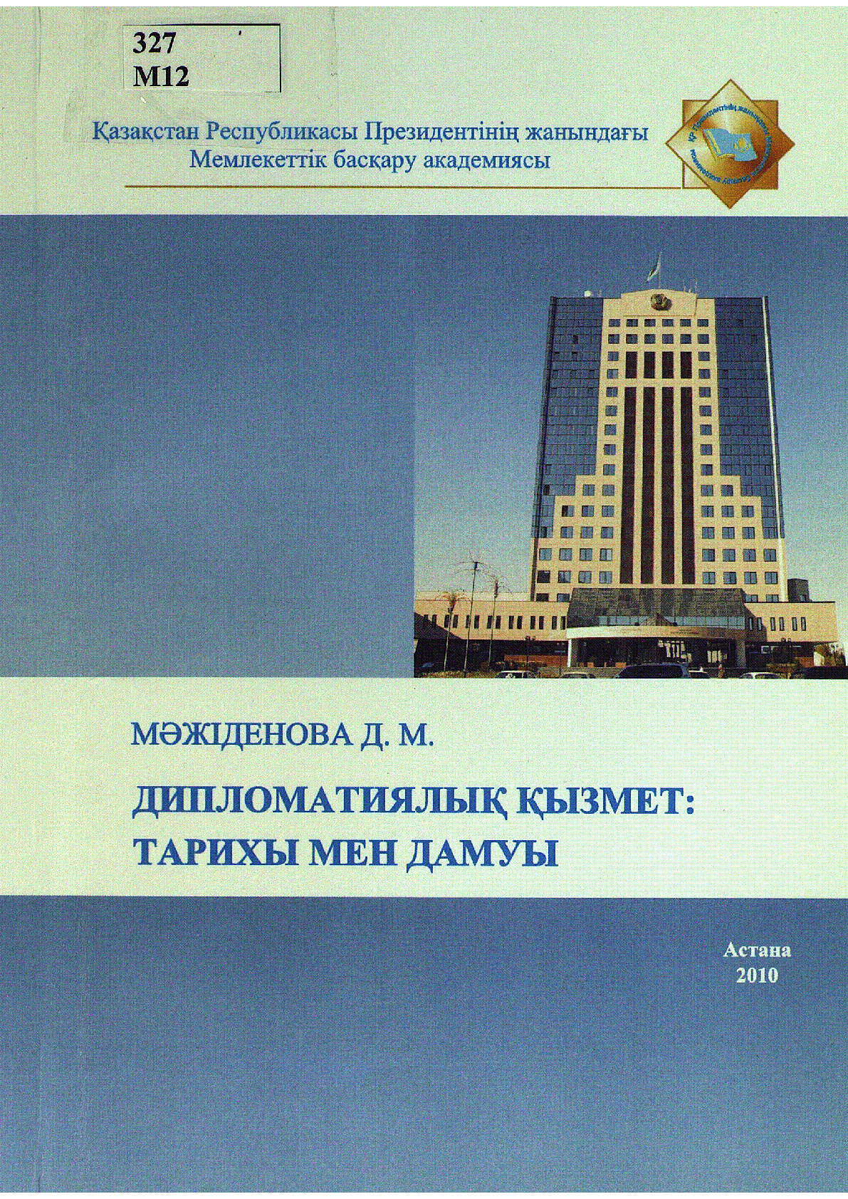 Дипломатиялық қызмет: тарихы мен дамуы / Мәжіденова, Дарико Мағауияқызы ... – Астана : [Б. ж.], 2010. - 239 б. . – Библиогр.: 224-239 б. . – 978-601-287-016-9