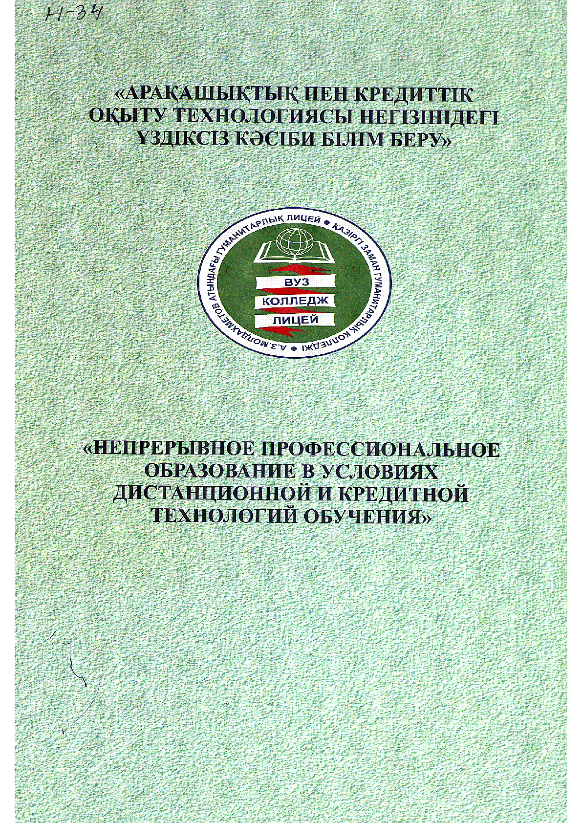 Непрерывное профессиональное образование в условиях дистанционной и кредитной технологий обучения / ; Министерство образования и науки Республики Казахстан, Департамент образования г. Астаны ; Гуманитарный лицей имени А. З. Мулдахметова, Современный гуманитарный колледж Казахстанско-Российского университета... – Астана : [Б. и.], 2008. - 139 с. - Текст на рус. и англ. языках . – Библиогр.: в конце ст. . – 9965-762-35 Х