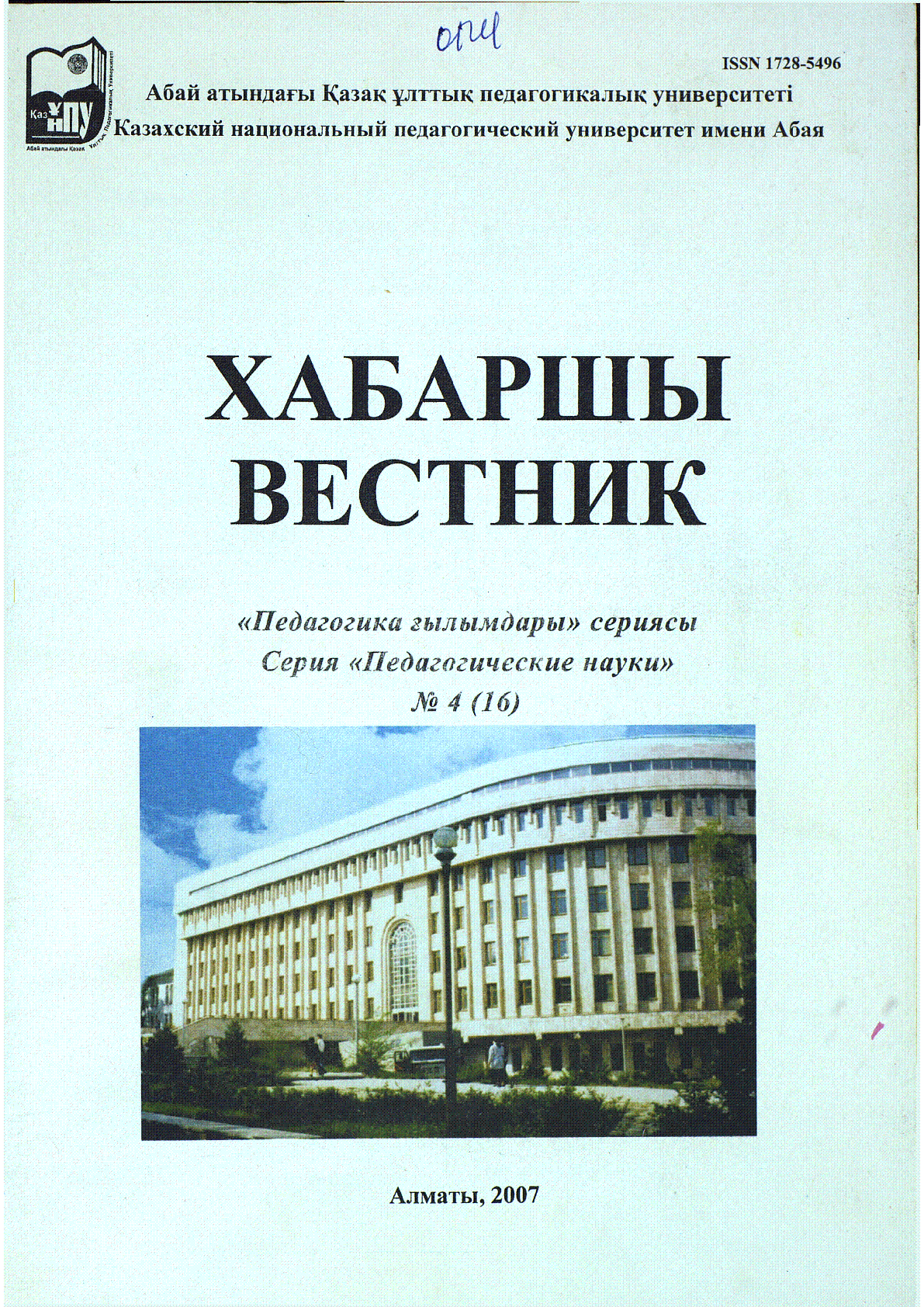 Хабаршы. "Педагогика ғалымдары" сериясы / Абай атындағы Қазақ ұлттық педагогикалық университеті ; бас.ред. Қ.Қ.Жампеисова. – Алматы : КазНПУ им.Абая, 2007.-№4. -