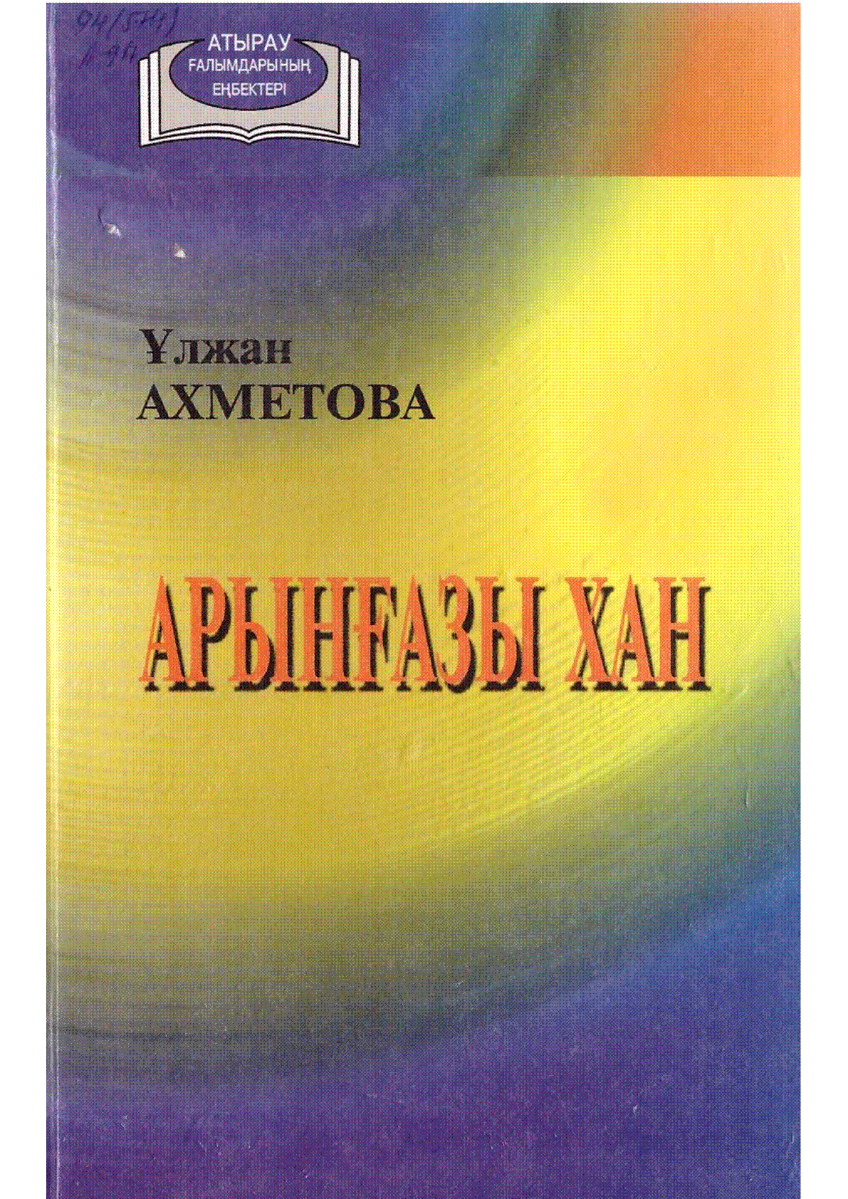 Арынғазы хан [Мәтін] : (1786-1833) : (ЖОО студенттеріне арналған оқу құралы) / Ұ. Ахметова ... – Ақтөбе : [б. ж.], 2004. - 168 б.– (Атырау ғалымдарының еңбектері. . – Библиография: 144-159 б. . – 1000 дана – ISBN 5-7667-9675-7 (мұқ.) : 537, 06 тг.