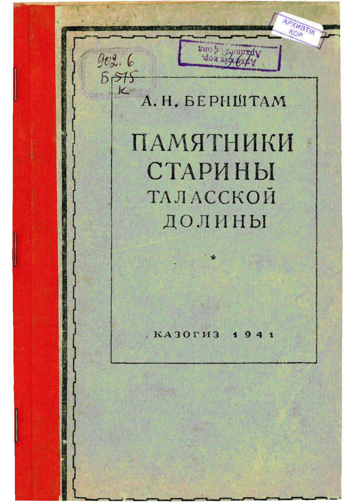 Памятники старины Таласской долины [Текст] : Ист.-археол.очерк / Бернштам ; под. ред. и с предисловием проф. А.Ю. Якубовского... – Алма-Ата : КазОГИЗ, 1941. - 65 с. : Казахский филиал Академии наук СССР . . : 3р.