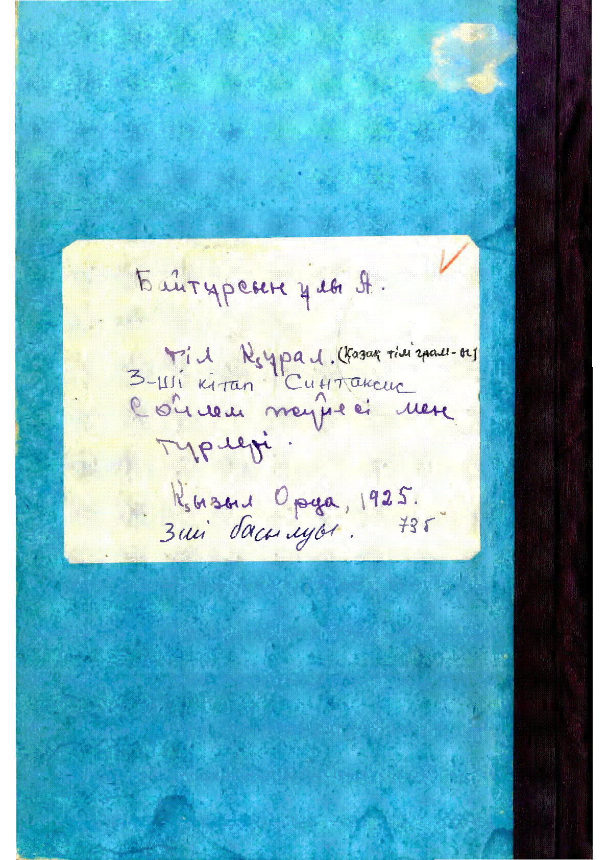 Тіл құрал = ءتىل-قۇرال [Мәтін] : Сөйлем жүйесі мен түрлері / А. Байтұрсынов .., 3 - ші тіл танытқыш кітап. – Қызылорда : Қазақ мемлекет баспасы, 1925. - 73 б. - Мәтін араб графикасымен жазылған . . – 7000 дана