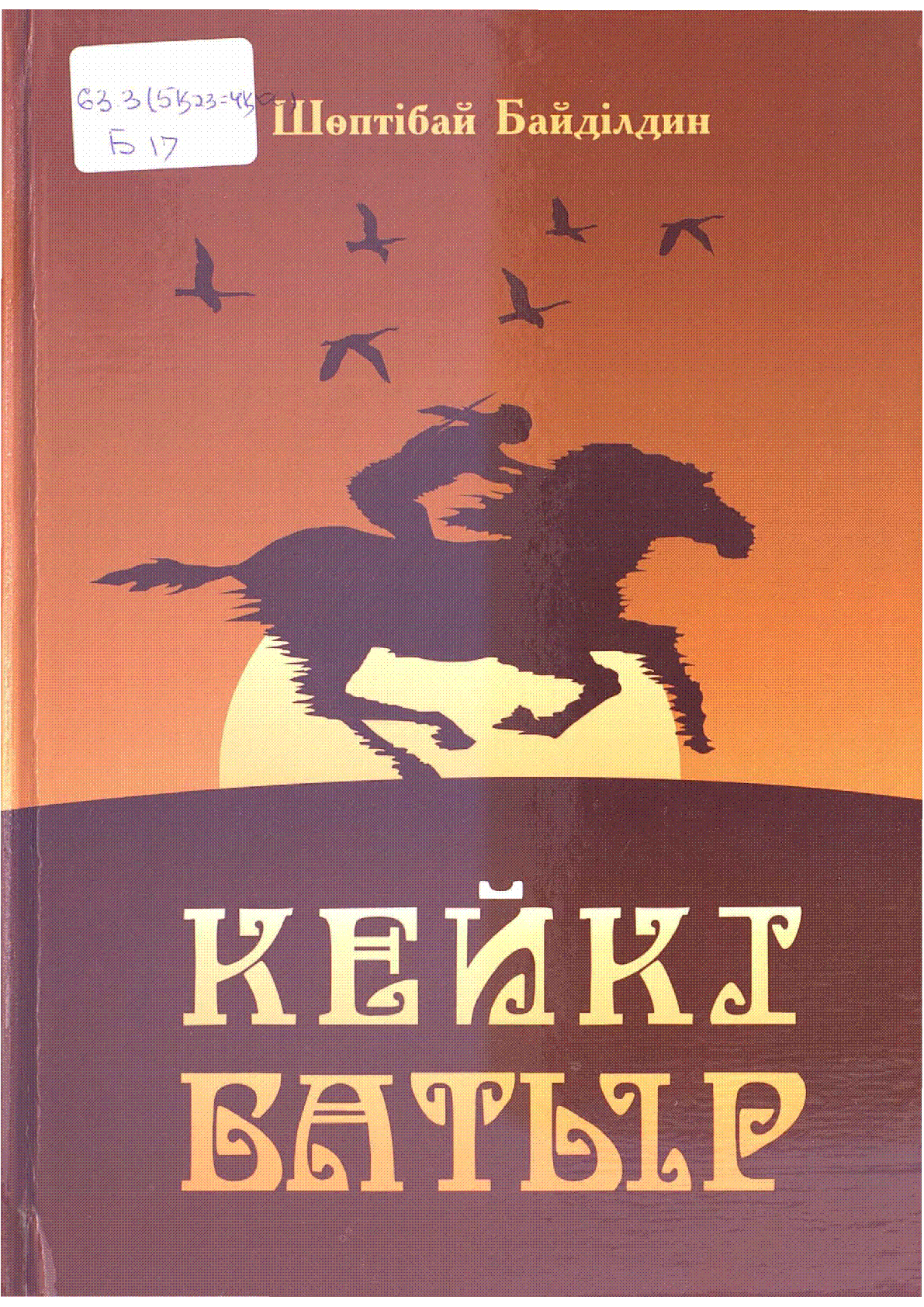 Кейкі батыр [Мәтін] / Ш. Байділдин ; [алғы сөзін жазған С. Қуанышбаев]... – Астана : Сарыарқа, 2014. - 364, [1] б., [23] п. сурет; . – Кейкі батыр жайлы құжаттар тізімі: 356-361 б. . – 500 дана – ISBN 978-601-277-166-4 (мұқ.) : 1 тг.