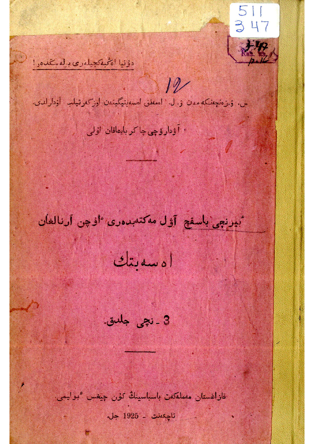Бірінші басқыш ауыл мектептері үшін арналған есептік [Мәтін] / С. Зенченко, В. Эменов ; ауд. Ш. Баймақанұлы .- Ташкент : Қазақ мемлекеттік баспасы (күншығыс бөлімі) , 1925.– 3000 дана . - Мәтін араб графикасымен жазылған . 3- жылдық .– 69 б.