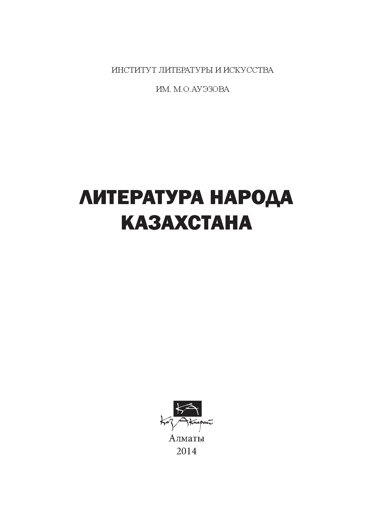 Литература народа Казахстана [Текст] : коллективная монография / ; [редкол.: С. В. Ананьева (отв. ред.) [и др.] ; под общ. ред. У. К. Калижанова] ; Ин-т литературы и искусства им. М. О. Ауэзова. – Изд. 2-е ., доп.. – Алматы : ҚазАқпарат, 2014. - 379 с. . . – 2000 экз. – ISBN 978-601-03-0225-3 (в пер.)
