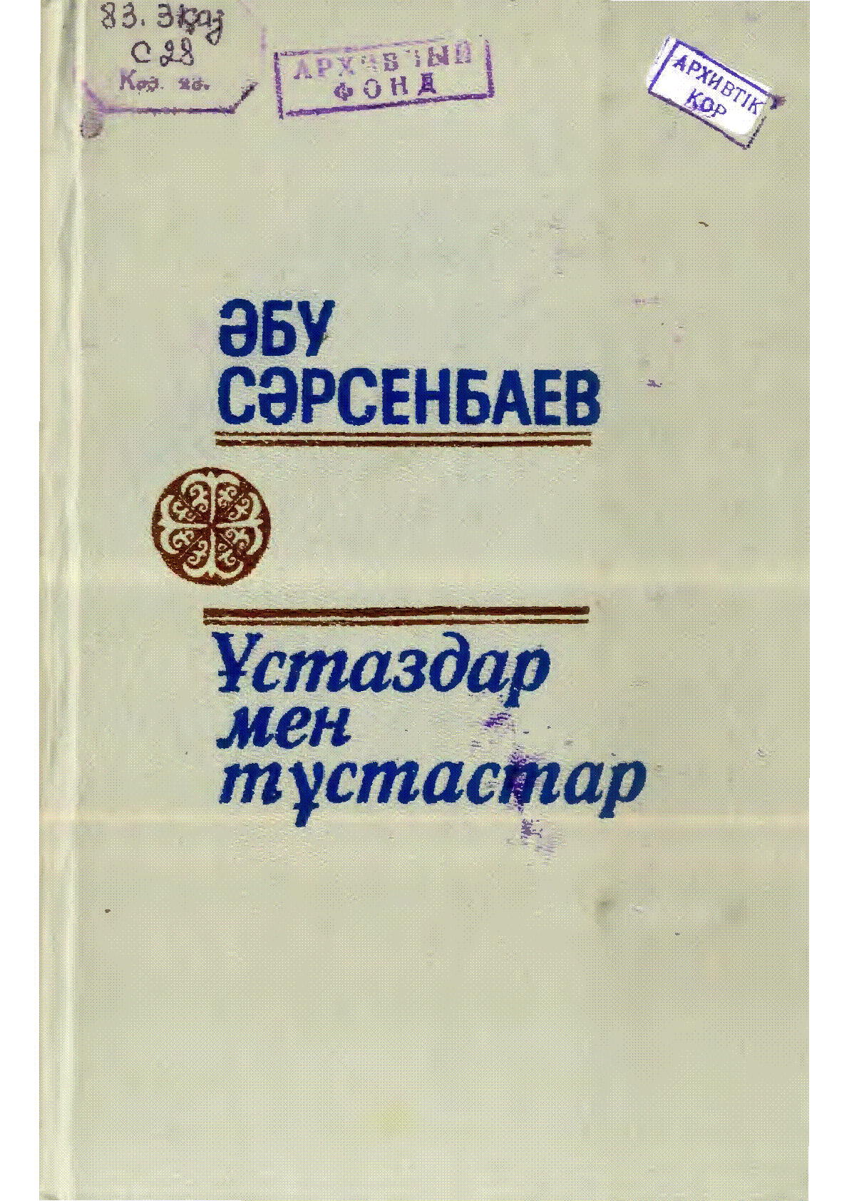Ұстаздар мен тұстастар [Мәтін] : Әдебиет туралы ойлар,толғаныстар мен естеліктер. / Ә. Сәрсенбаев ... – Алматы : Жазушы, 1986. - 440 б. - Хамит Ерғалиев қоры. - Автор қолтаңбасымен . . – 8000 дана (мұқ.) : 300 тг.