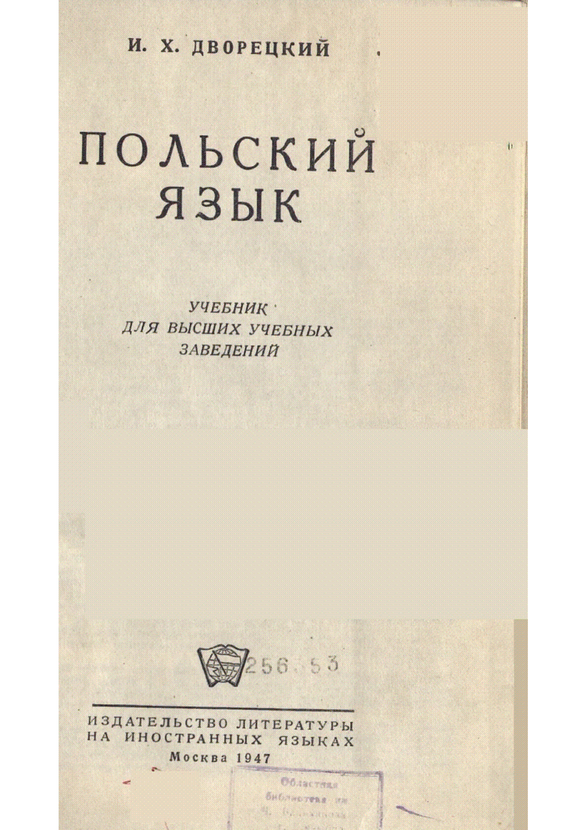 Польский язык [Текст] : учебник для высш. учеб. заведений / И. Х. Дворецкий ... – Москва : Изд-во лит. на иностр. яз., 1947. - 355 с. . . – 10100 экз. (в пер.)