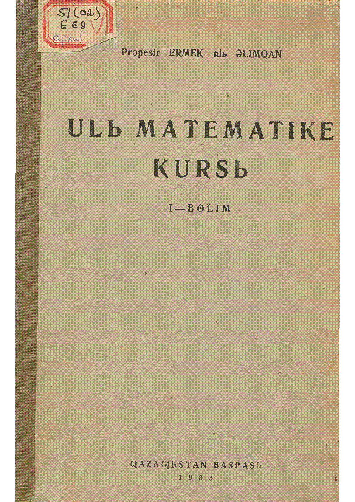 Ұлы математика курсы [Text] Ермекұлы Ә.- Қызыл-Орда : Қазақстан баспасы , 1935.– 3 500 дана . - Латын графикасымен. . 1-бөлім . Аналитикалық геометрия мен дифференциал және интеграл есептеу негіздері– 160 бет