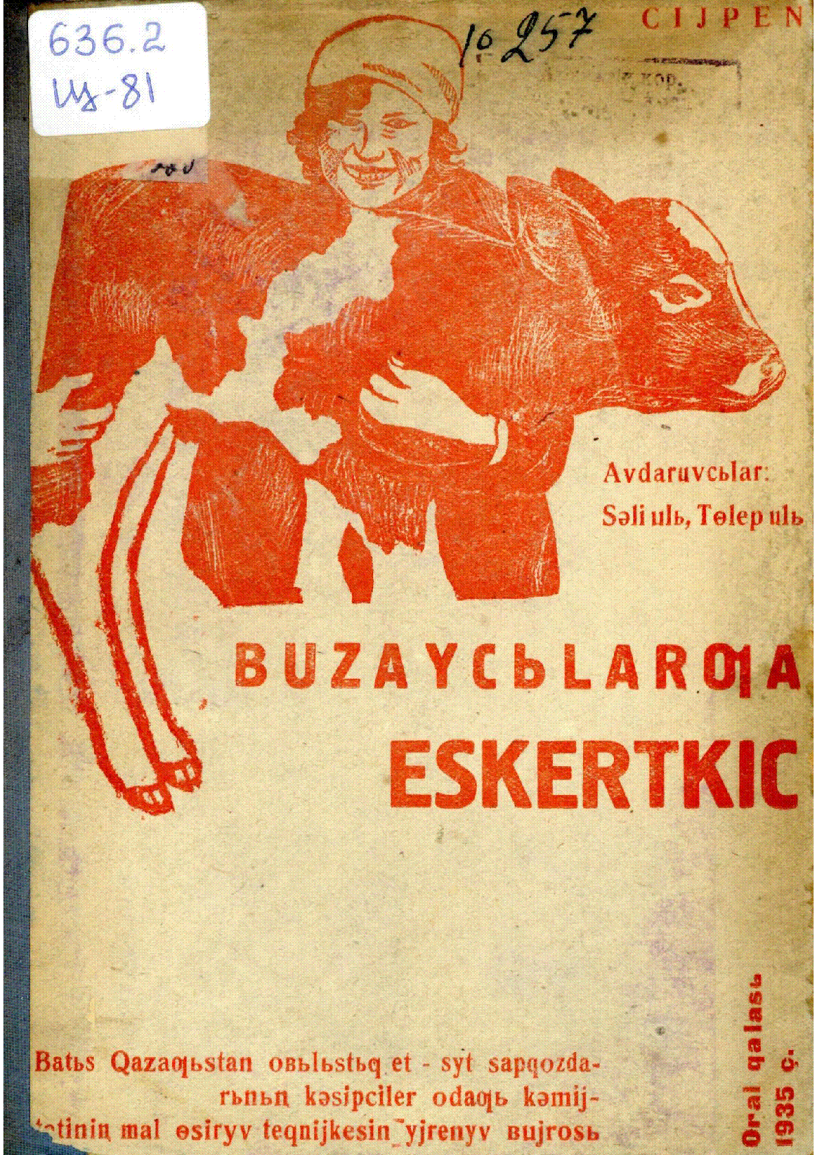Бұзаушыларға ескерткіш [Text] / Щипин Е. ... – Орал : Орал баспаханасы, 1935. - 33 бет - Латын графикасымен. . . – 15 000 дана
