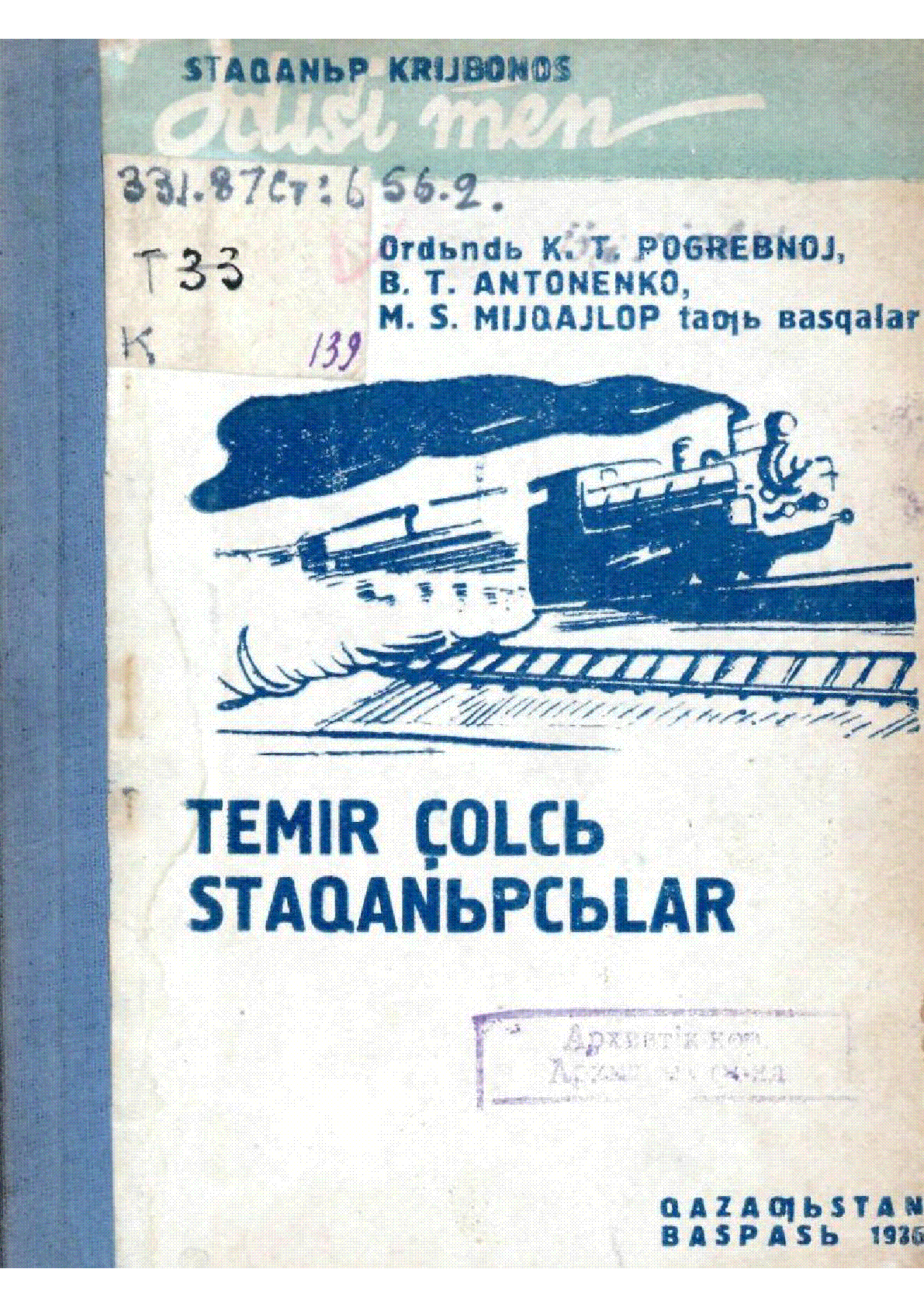 Темір жолшы стахановшылар [Text] / Погребной К.Т. Антоненко Б.Т. ; жауапты ред. Танкин ; ауд. Байшымыров... – Қызылорда : Қазақстан баспасы, 1936. - 110 бет– (Стаханов-Кривонос әдісімен. . . – 1150 дана