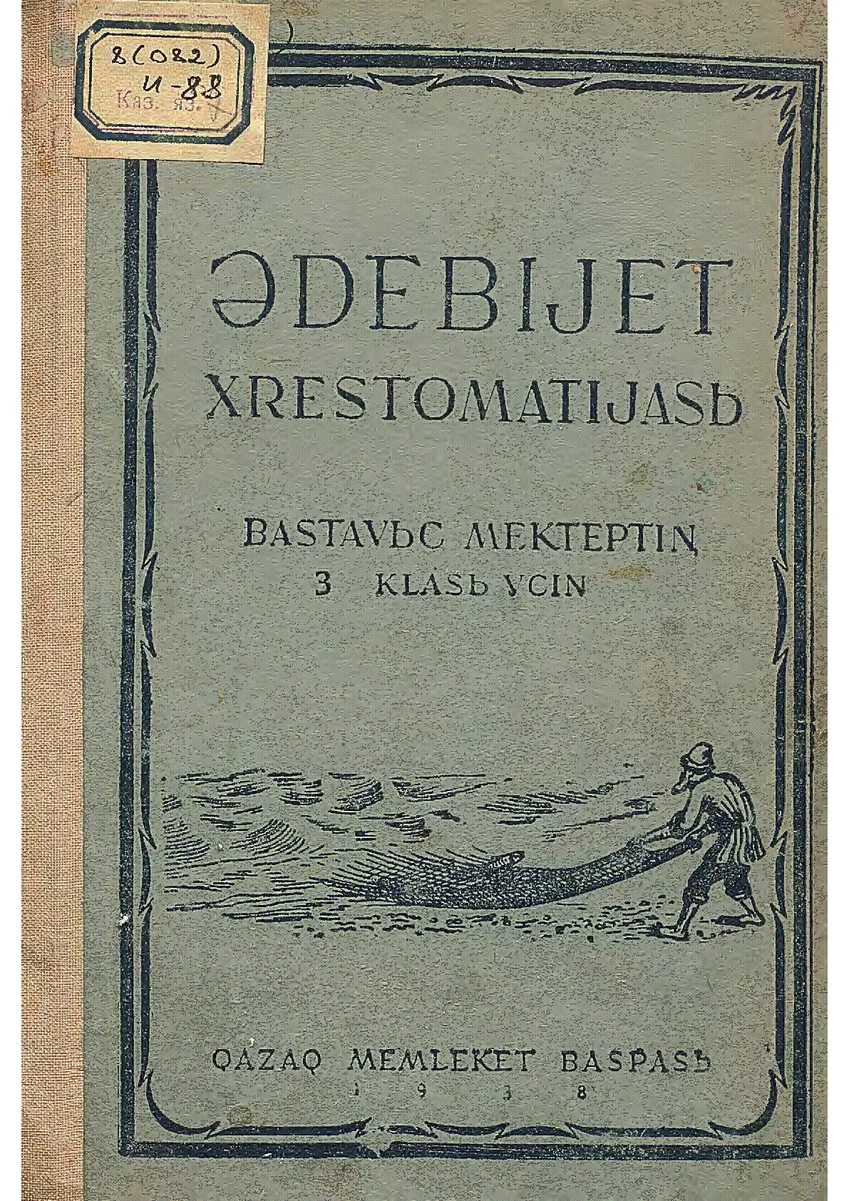 Әдебиет хрестоматиясы [Мәтін] : бастауыш мектептің 3-класына арналған ; құраст.: Е. Смаилов, Ә. Сәсенбаев ; Қазақстан Оқу Халық Комиссариаты .- Алма-Ата : Қазақ мемлекет баспасы , 1938.– 77150 дана . (мұқ.) - Мәтін латын қарпімен қазақ тілінде . 1-бөлім . ертегілер– 109, [2] б. (мұқ.) : 40 тг.
