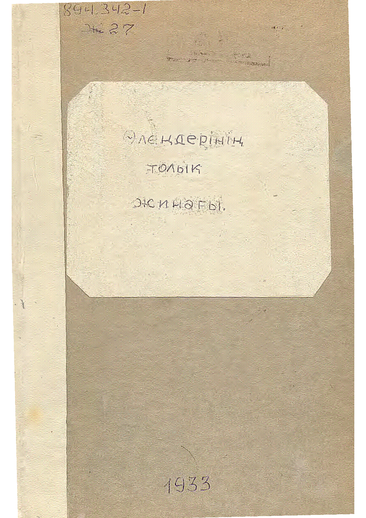 Толық жинағы [Text] : өлеңдерінің толық жинағы / Жансүгірұлы Ілияс ... : Қазақстан баспасы, 1933. - 454 бет, сурет; 19 см + порт. . - Микрофиша., - Латын графикасымен. . . – 3 000 дана : 7 сос 70 тиын