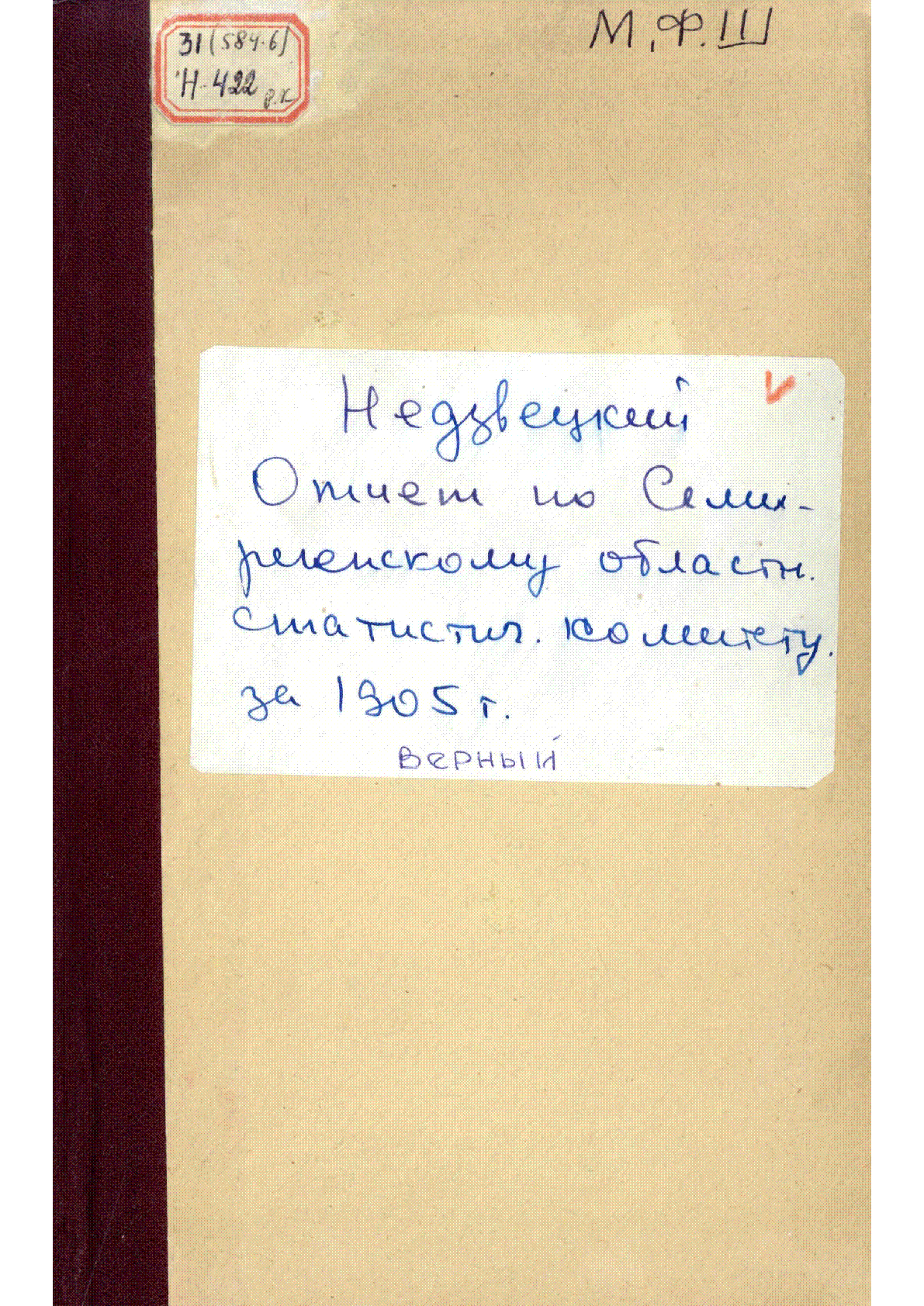 Отчет по Семиреченскому Областному статистическому комитету за 1905 г. [Текст] / ; составлен на основании ст. 621 т. II. Св. Зак. секретарем Комитета В. Е. Недзвецким... – Верный : Типография Семиреченскаго Областного Правления, 1906. - 41 с. . . – [б. т.]