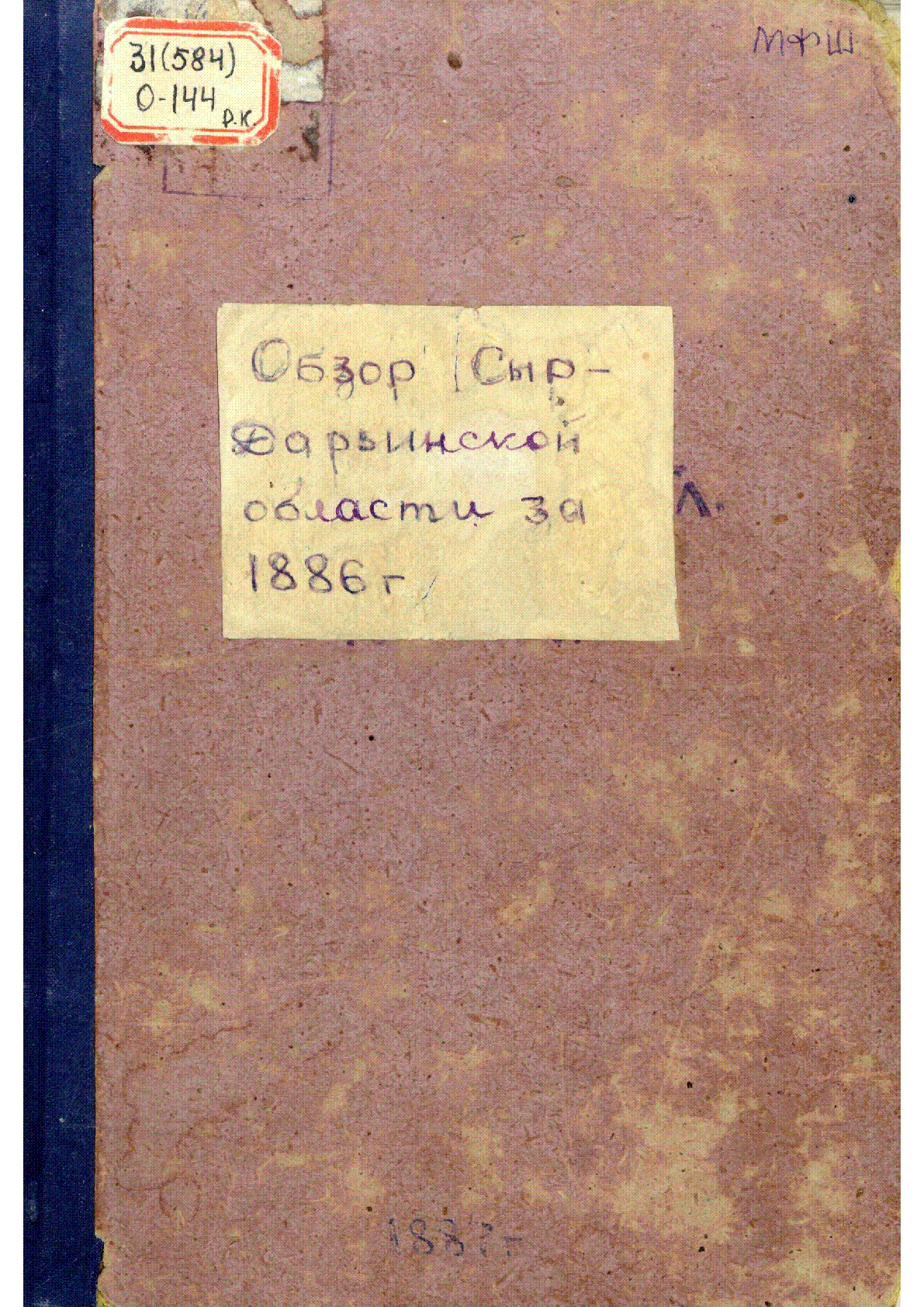 Обзор Сыр-Дарьинской области за 1886 год [Текст] : Приложение к всеподанныйшему отчету военнаго губернатора области / ... – Ташкент : Типо-литография. С.И. Лахтина, 1887. - 384 с. . . – б.т.