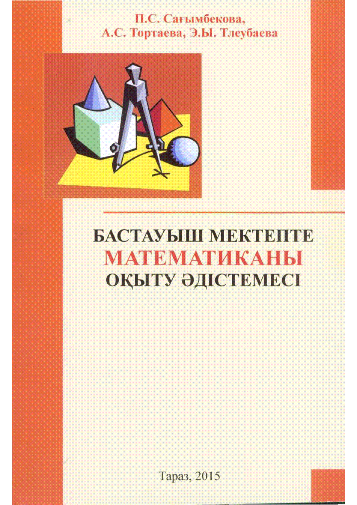 Бастауыш мектепте математиканы оқыту әдістемесі [Мәтін] : оқу құралы : 5В010200 – Бастауыш оқыту педагогикасы мен әдістемесі мамандығы бойынша білім алатын студенттерге арналған / П. С. Сағымбекова А. С. Тортаева Э. Ы. Тлеубаева . – 2-бас., толықт. .. – Тараз : [б. ж.], 2016. - 234 б. . – Библиогр.: 223-233 б. . – 100 дана – 9965-780-26-9