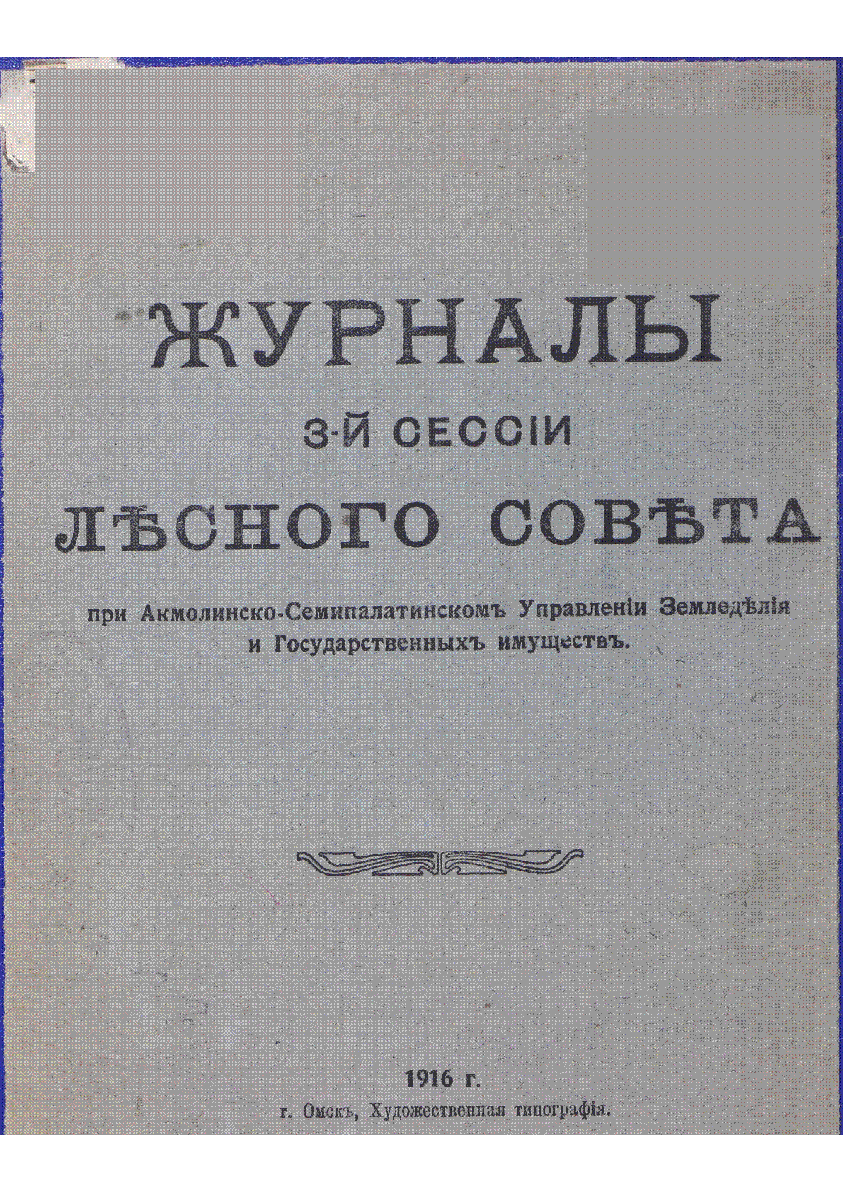 Журналы 3-й сессии лесного совета при Акмолинско-Семипалатинском Управлении Земледелия и Государственных имуществ [Текст] : 5-11 декабря 1915 г. / ; Упр. Земледелия и Гос. имуществ Акмолинской и Семипалатинской обл.... – Омск : Художественная типография, 1916. - 142 с.+ карта . . . – [б. т.] (в пер.) : 30 тг.
