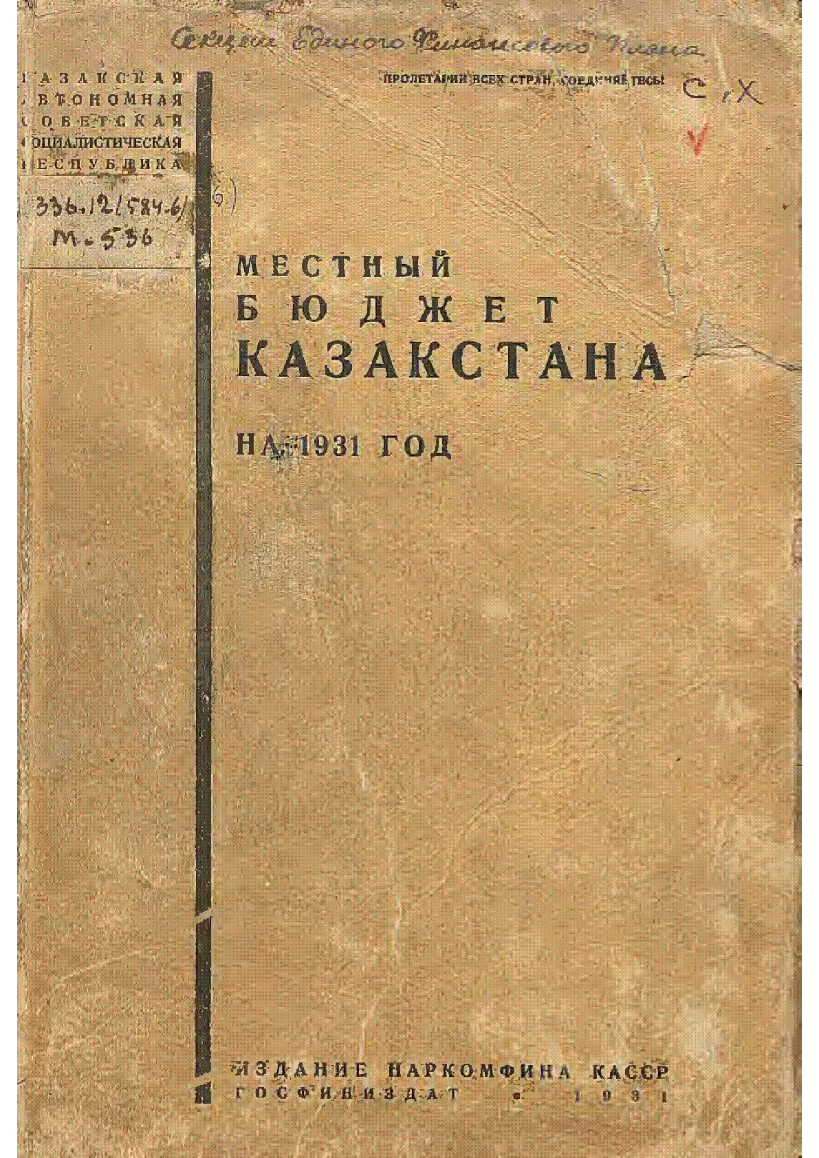 Местный бюджет Казакстана на 1931 год [Текст] / ... – Алматы : Госфиниздат, 1931. - 488, [3] с.– (Казакская Автономная Советская Социалистическая Республика. . . – 1000 экз. (в пер.) : 50 тг.