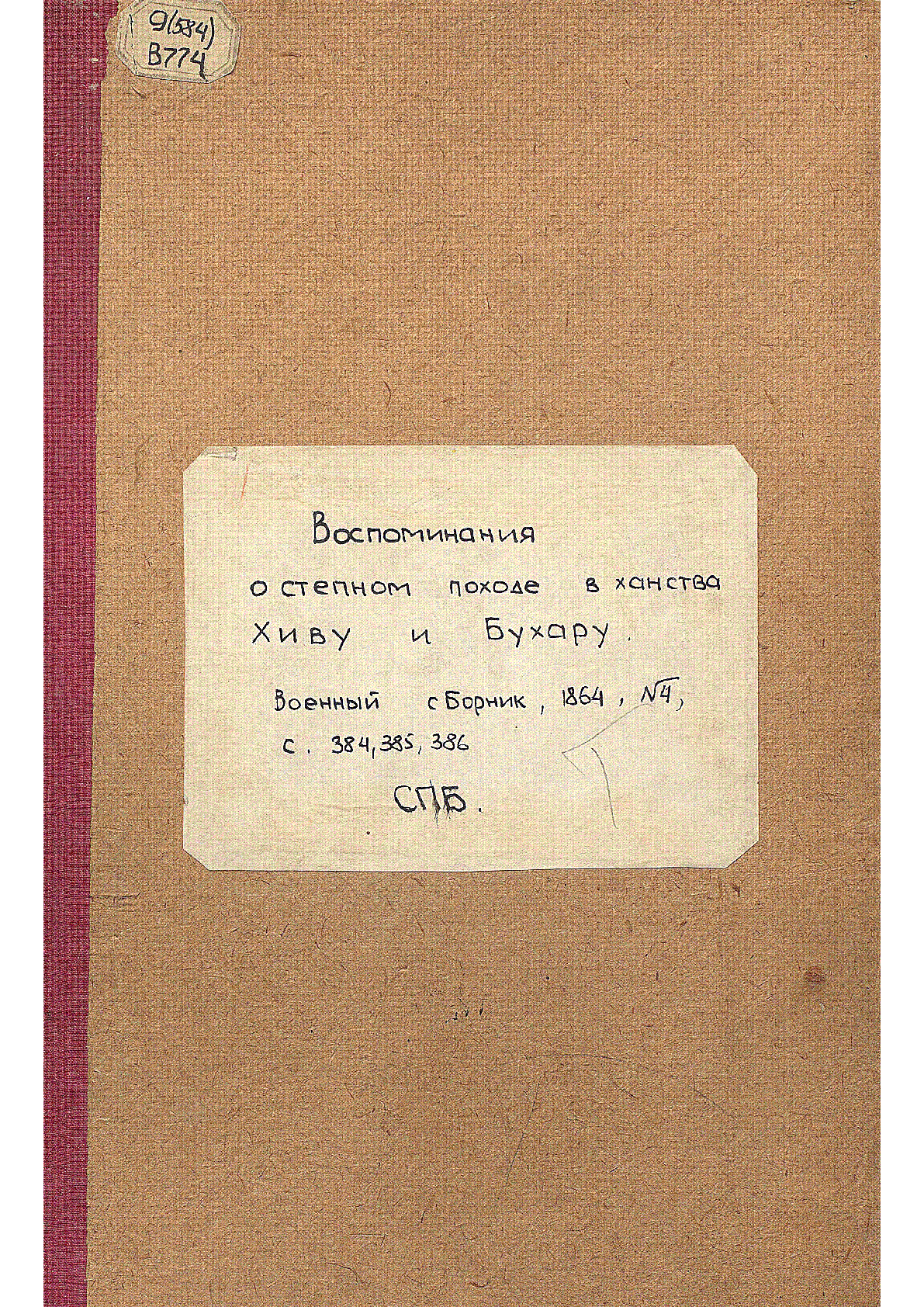 Воспоминания о степном походев ханства Хиву и Бухару. [Текст] / ... – СПб., 1864. - 386 стр. . . : 3р.00к.