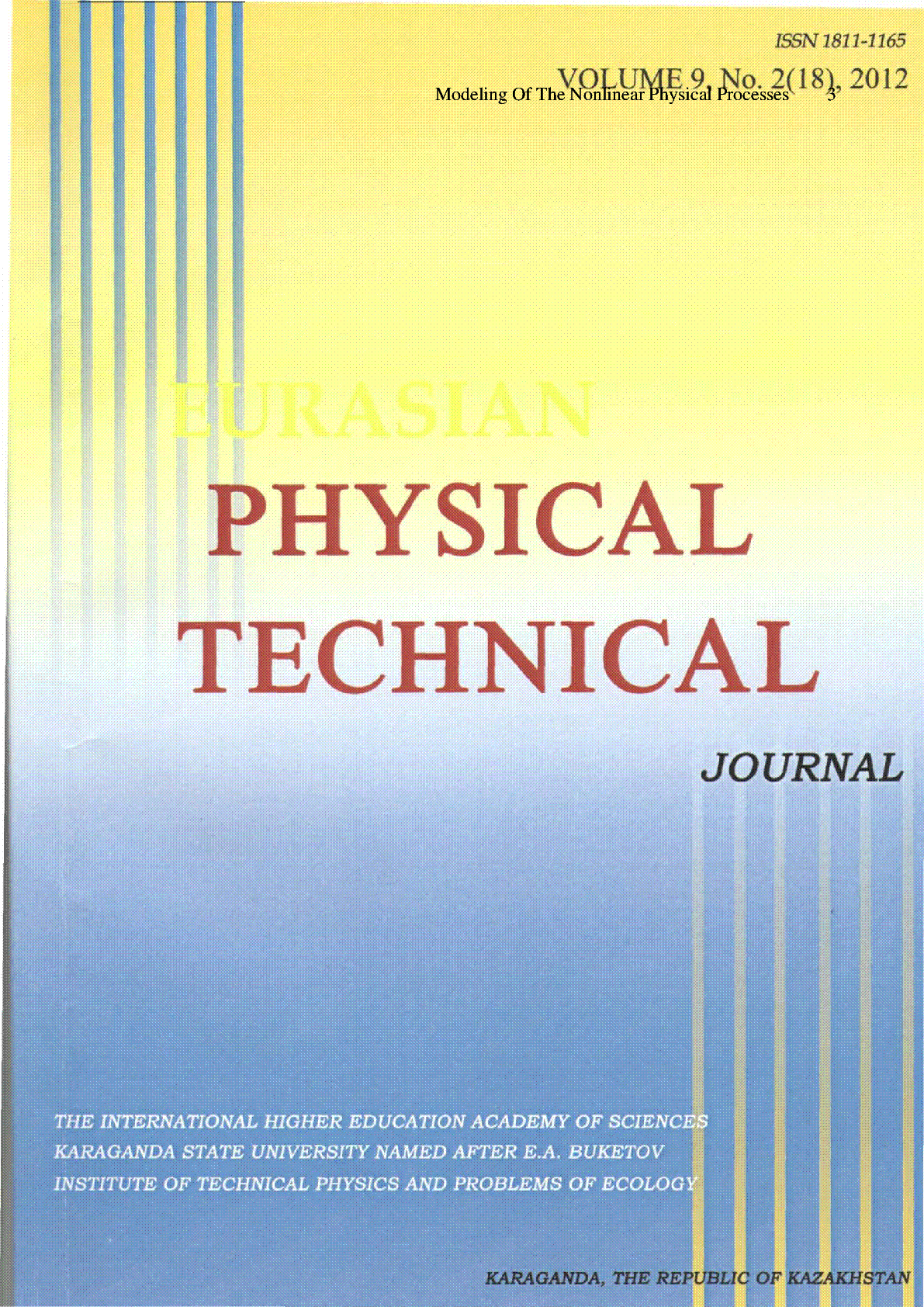 Eurasian physical technical journal [Text] ; project manager, rector E. K. Kubeev; editor in Chief S. E. Sakipova; consult. of transl. S. B. Yakhina, K. E. Akhmerova; technical secretaries: Z. T. Kambarova ; The international higher education academy of sciences; Karaganda state university named after E. A. Buketov; Institute of technical physics and problems of ecology. – Karaganda : [s. n.], 2012. - – Guarterly journal. – 1811-1165. 2012, №2(18), Volume 9.
