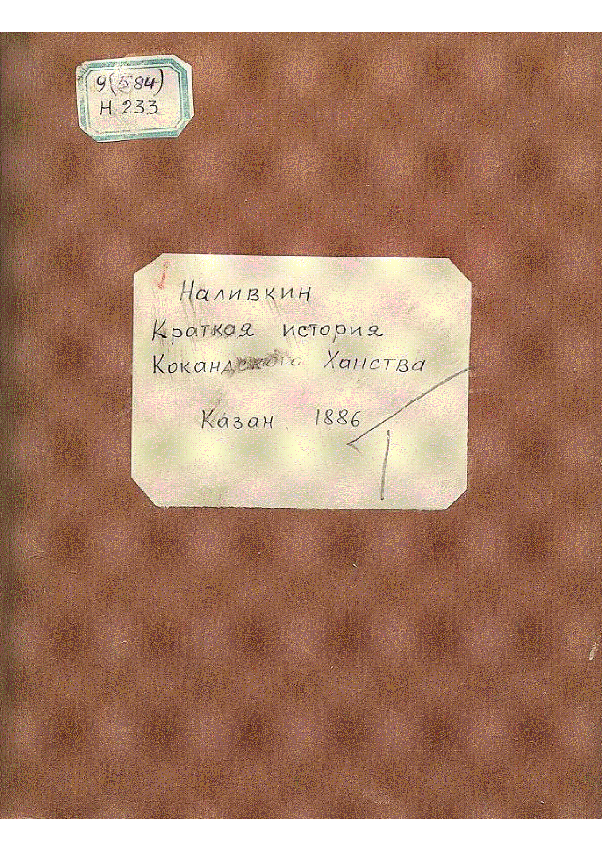 Краткая история Кокандского ханства. [Текст] / Наливкин В. ... – Казань : Тип. Императорского Университета, 1886. - С.1-215,1-49,1-123 22,5х16 см. + Родословная Кокандской династии минг . - Микрофиша. . . – Б.т. : 1р.40к.