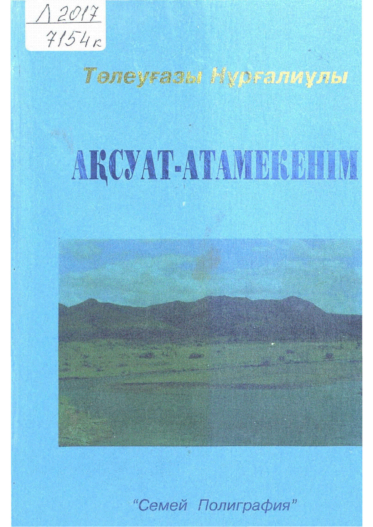 Ақсуат - Атамекенім [Мәтін] / Т. Нұрғалиев ... – Семей : [б. ж.], 2003. - 508 б., сурет; - Автор қолтаңбасымен . . – 300 дана – 9965-9191-8-6 (мұқ.) : 40 тг.