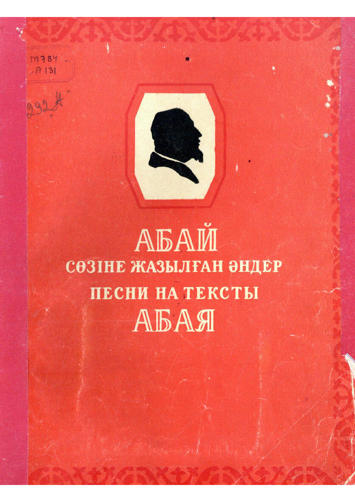 Абай сөзіне жазылған әндер = Песни на тексты Абая [Мәтін] / ... – Алматы : Қазақтың мемлекеттік көркем әдебиет баспасы, 1954. - 40, [1] б., ноталар;+ [5] л. н. . - Мазмұны: Әні С. Мұхамеджановтікі: Құлақтан кіріп, бойды алар ; Таңғажайып бұл қалай хат ; Өлсе өлер табиғат ; Жарқ етпес қара көңлім не қылса да. Әні М. Төлебаевтікі: Қақтаған ақ күмістей кең маңдайлы ; Мен көрдім ұзын қайың құлағанын. Әні М. Қойшыбаевтікі: Қалқам-ай мен үндемей жүремін көп ; Құйқылжыр көңіл құсы шартарапқа. Мен сәлем жазамын / А. Еспаевтікі ; Ғылым таппай мақтанба / С. Кәрімбаевтікі. . . – [б. т.] : 40 тг.